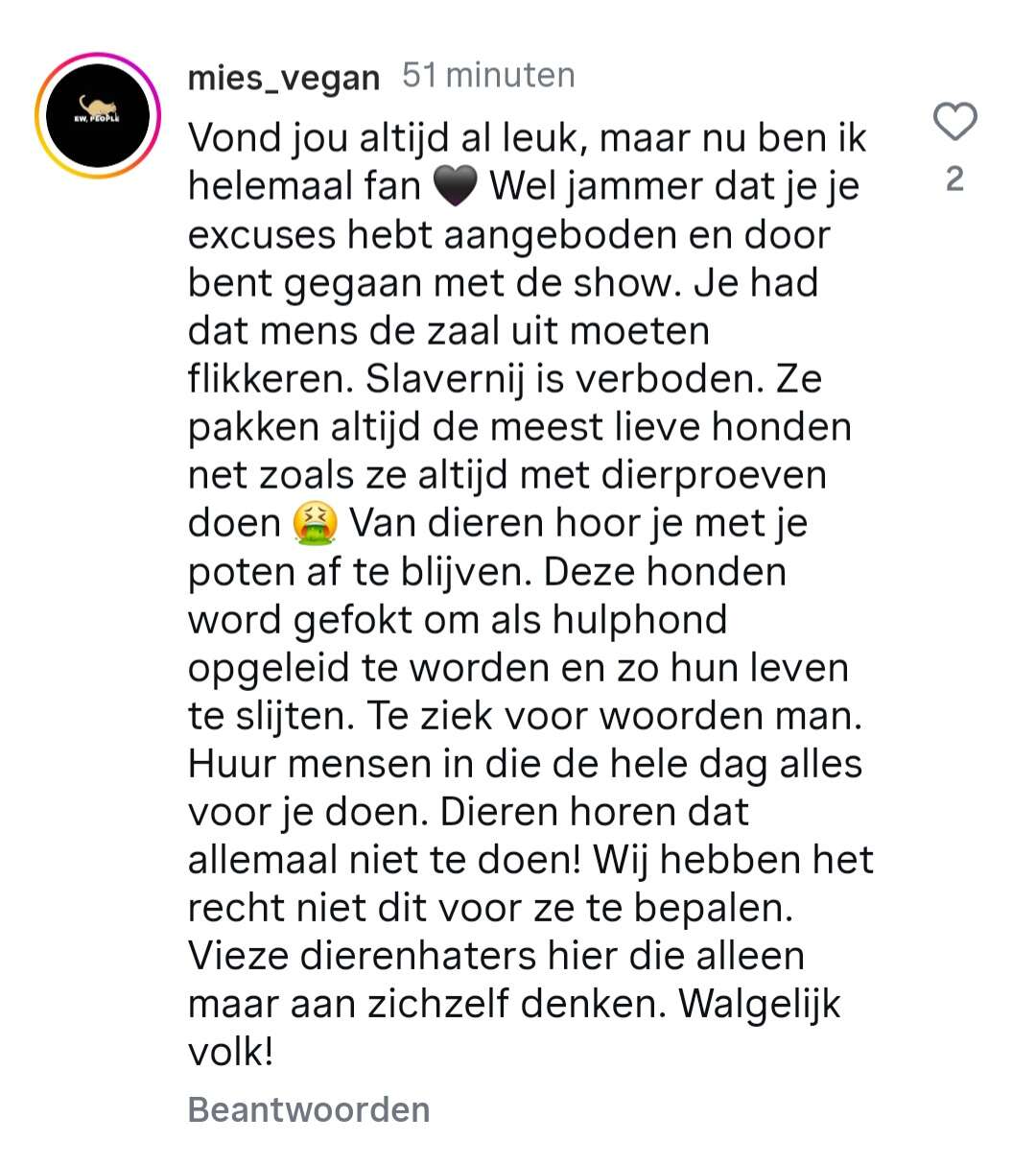 Dat is gewoon dat ‘grappig’ Rotterdamse waar hij bekend om staat toch? Ik vind deze man verder heel erg ongrappig en dom/onwetend dat hij moeilijk doet over een hulphond, maar ook overdreven dat dit door social media zo groot gemaakt wordt en ik inmiddels al drie verschillende verhalen heb gelezen over wat er gebeurd zou zijn.