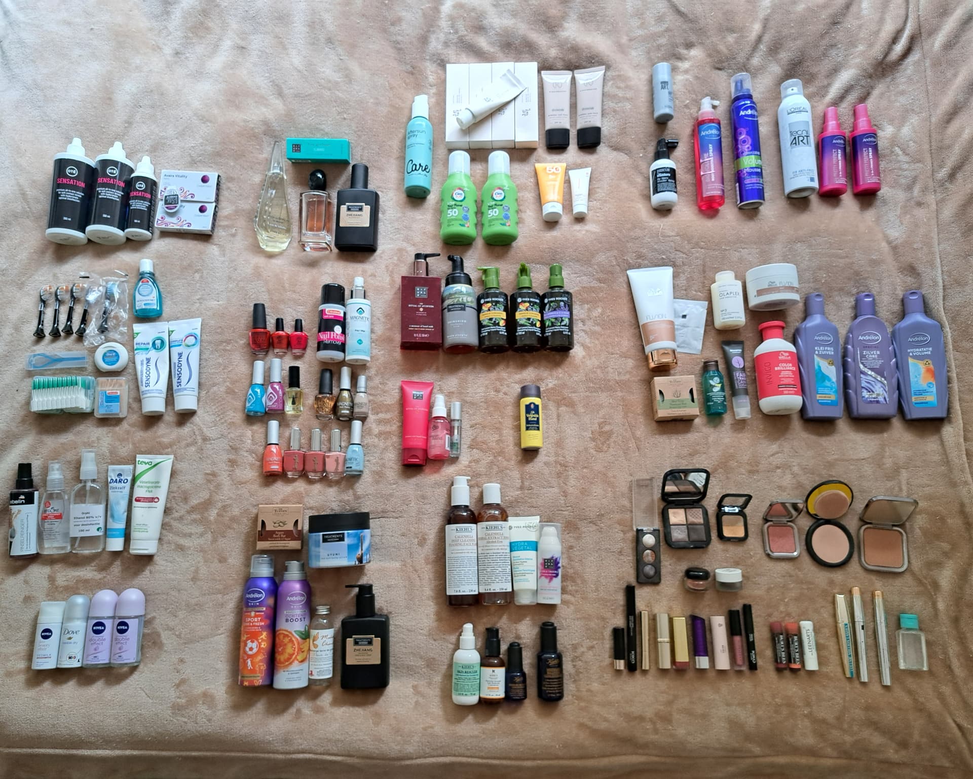 Ik had vorige week zondag alles op het bed gelegd en het viel me eigenlijk heel erg mee? Van sommige categorieën heb ik wel veel verschillende soorten, zoals: sea salt spray, klei voor in m’n haar, haarlak, volume poeder, etc., maar daar had ik geen dubbelen van. Van andere categorieën had ik wel veel voorraad, maar ergens voelde dat ook logisch, zoals: douchegel, tandpasta en serum. Ik koop dat namelijk altijd in de aanbieding of bestel het via Yesstyle/Stylevana en omdat het dan zo lang onderweg is soms, heb ik liever eentje extra op voorraad. Het enige waar ik echt te veel van heb zijn lippenbalsems