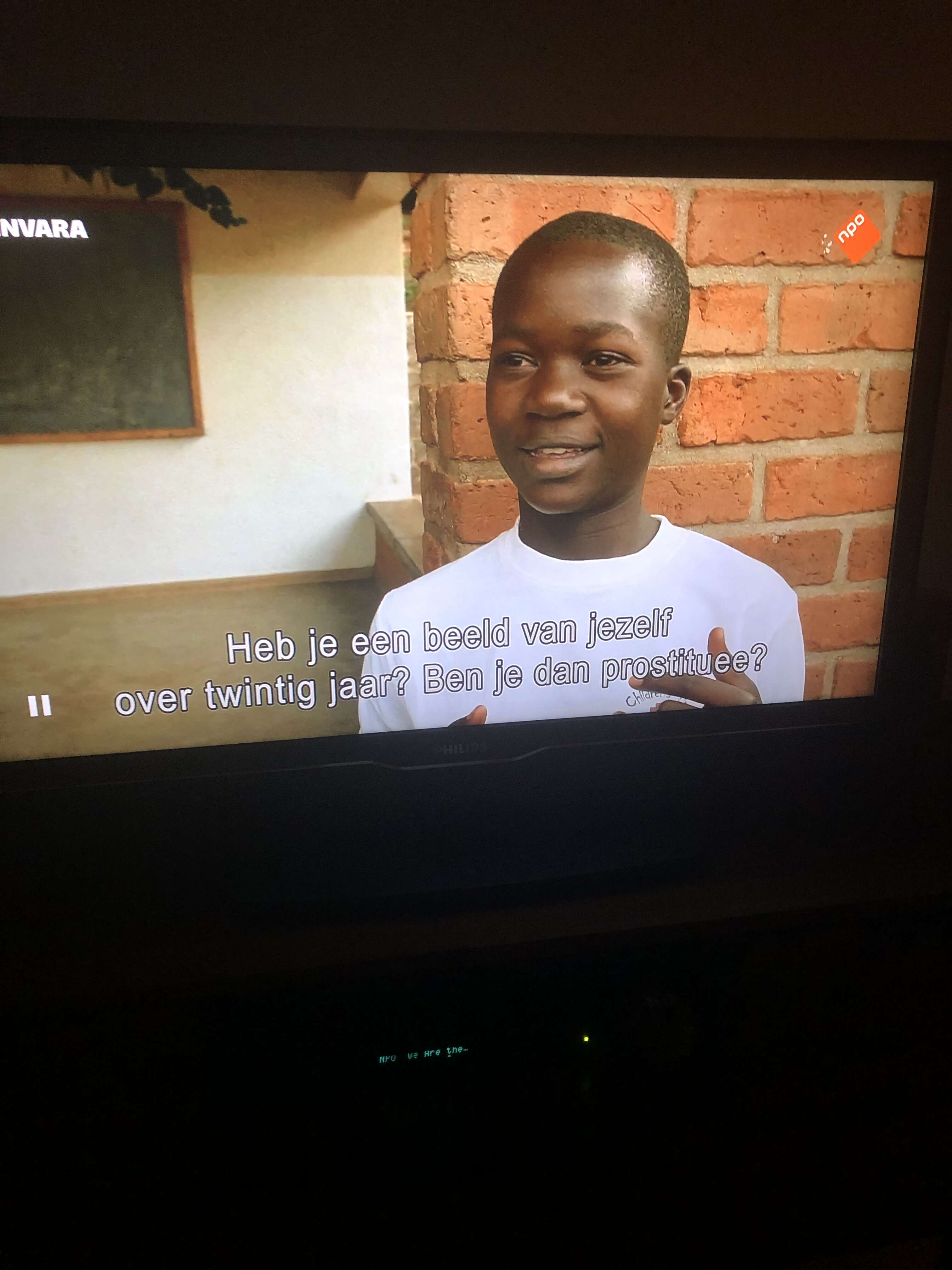 Ze gaan op bezoek bij een school, dit meisje vertelt dat meisjes uit haar dorp weinig tot geen kansen hadden. Sommigen gaan als prostitué werken (kennelijk verstond ik dit niet zo goed, of lette ik niet goed op? Maar dan nog… blijft rare vraag even later)