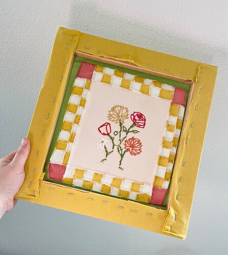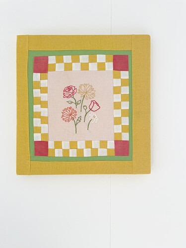 In heb een handwerkje opgespannen als een schilderijtje en het is zo schattig geworden! Dit is een cadeautje, de bloemen zijn de geboortebloemen van hun gezinsleden.