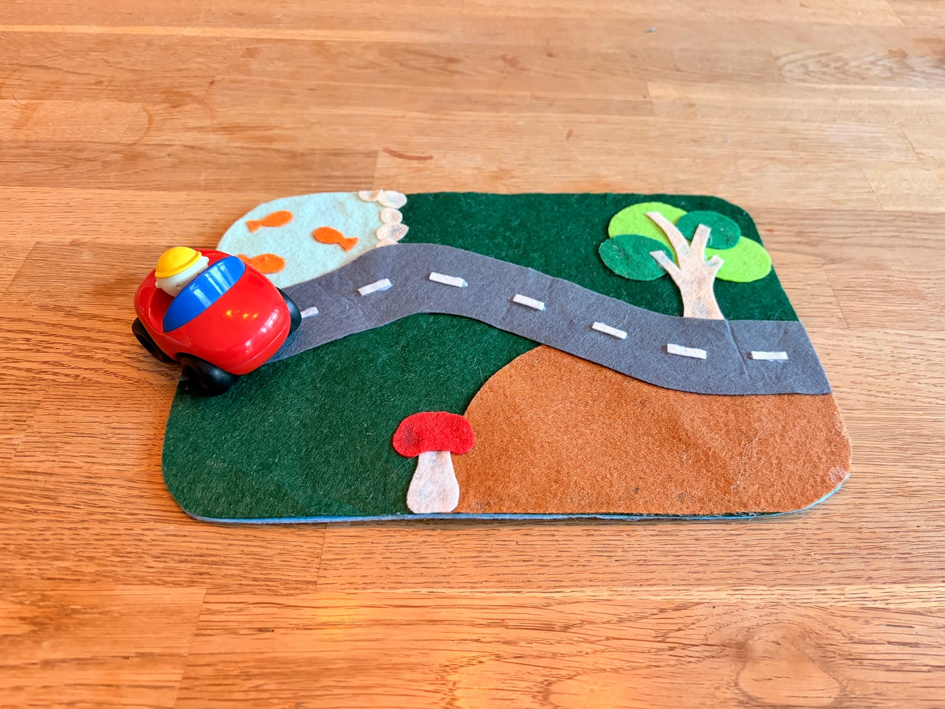 Vilten playmat gemaakt voor zoontje van vrienden van ons. Ben niet helemaal tevreden door de vlekken van de lijm maarjaaaa