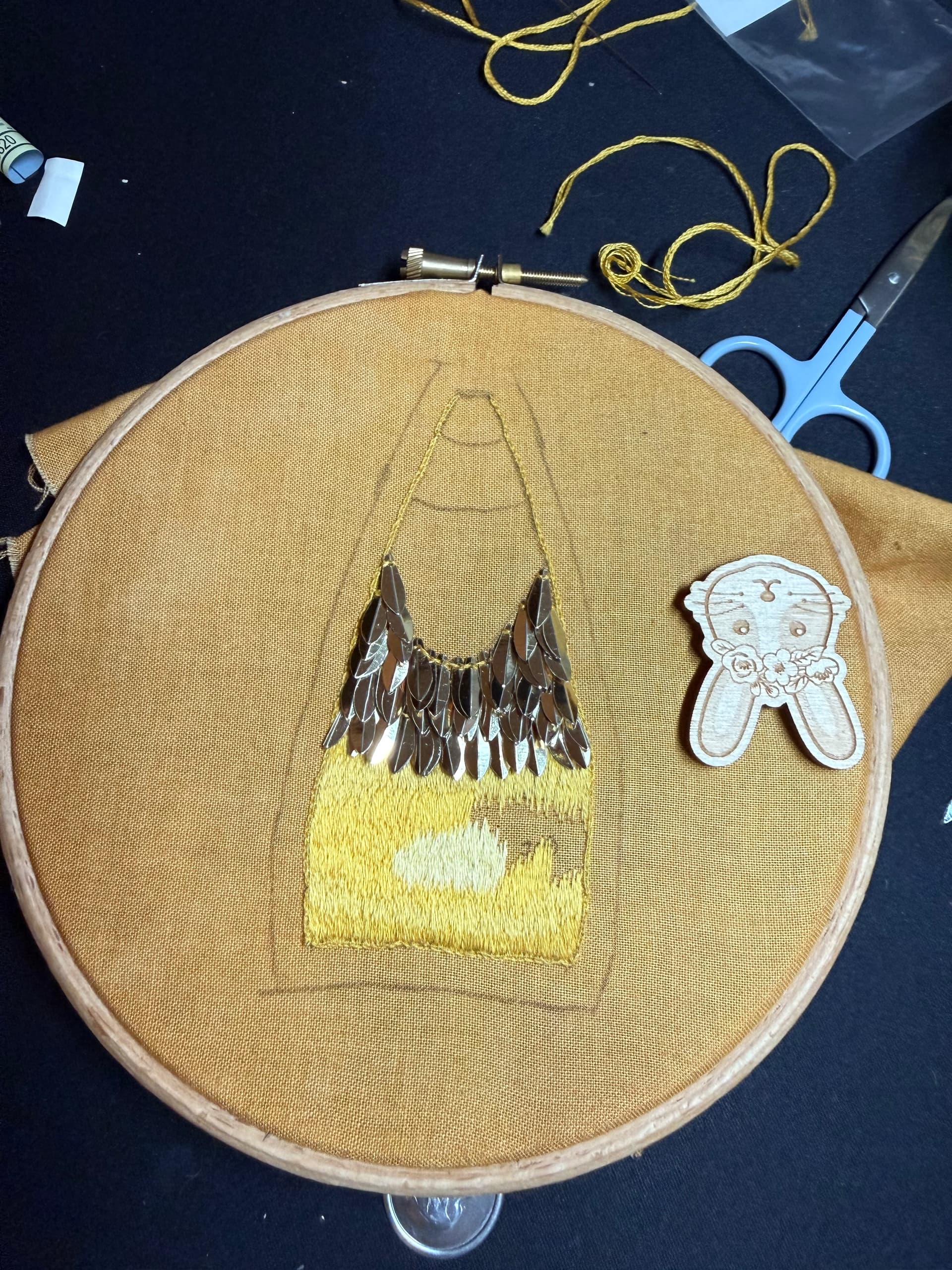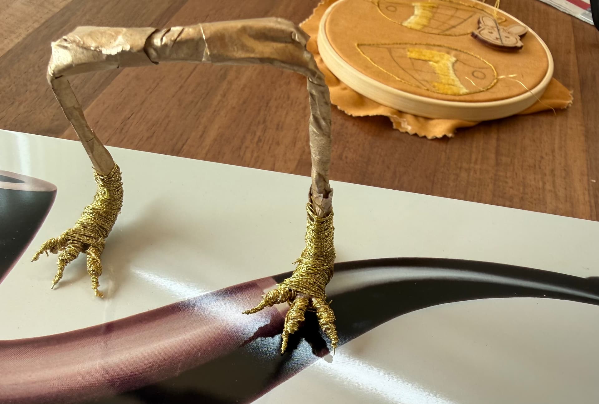 Ik ben nu bezig met een deel van de buik/hals van de vogel. Helaas gaat het exposeren niet door. Ze zijn bezig met een verbouwing dat tot en met eind 2027 bezig is.