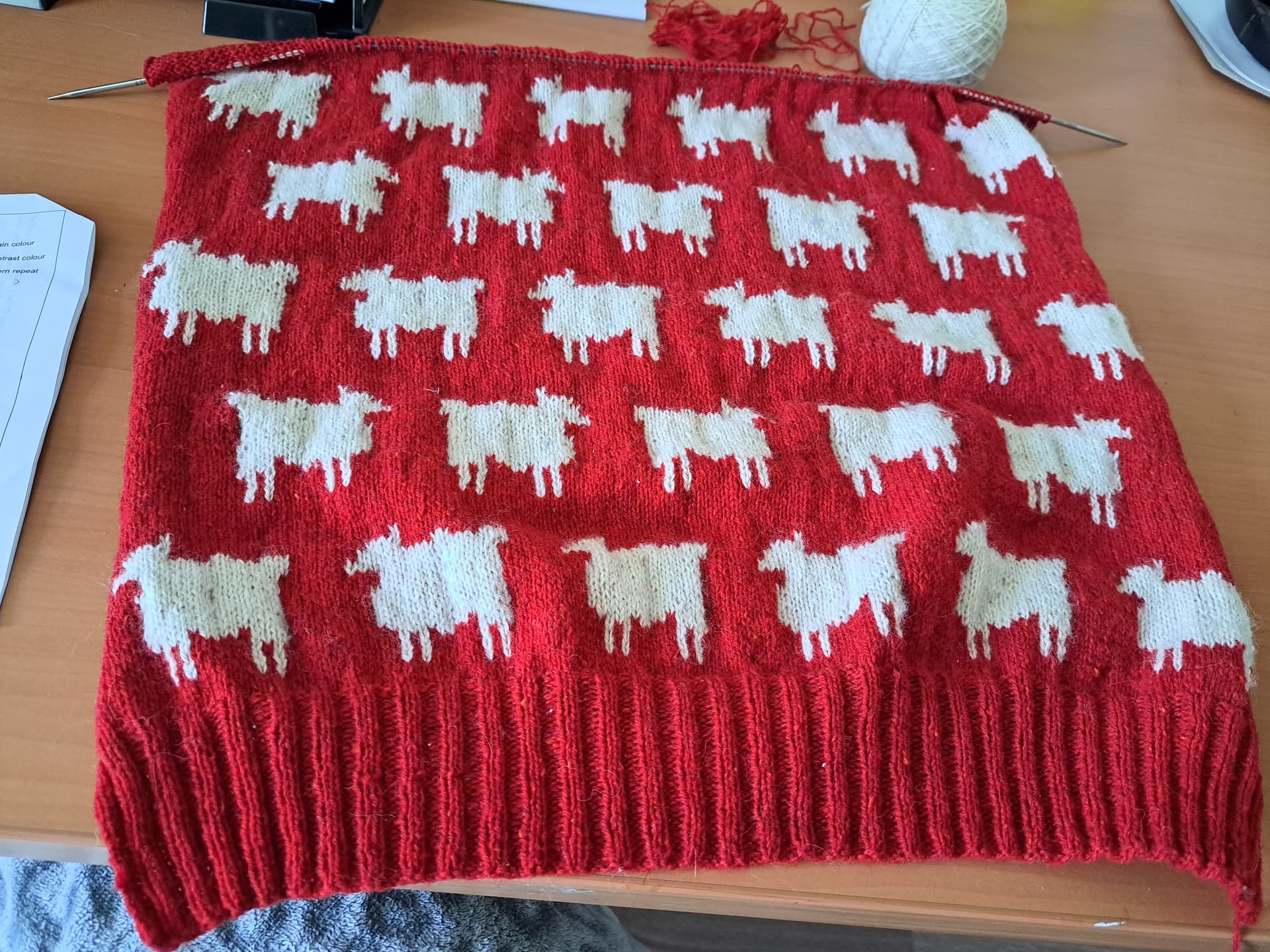 Nu op 5 van de 7 rijen schaapjes op het rugstuk. Slow and steady wins the race ![]()