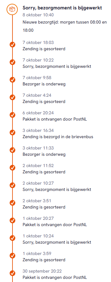 Het baart mij wel zorgen dat er staat eerst in de brievenbus bezorgd en daarna weer onderweg met de bezorger