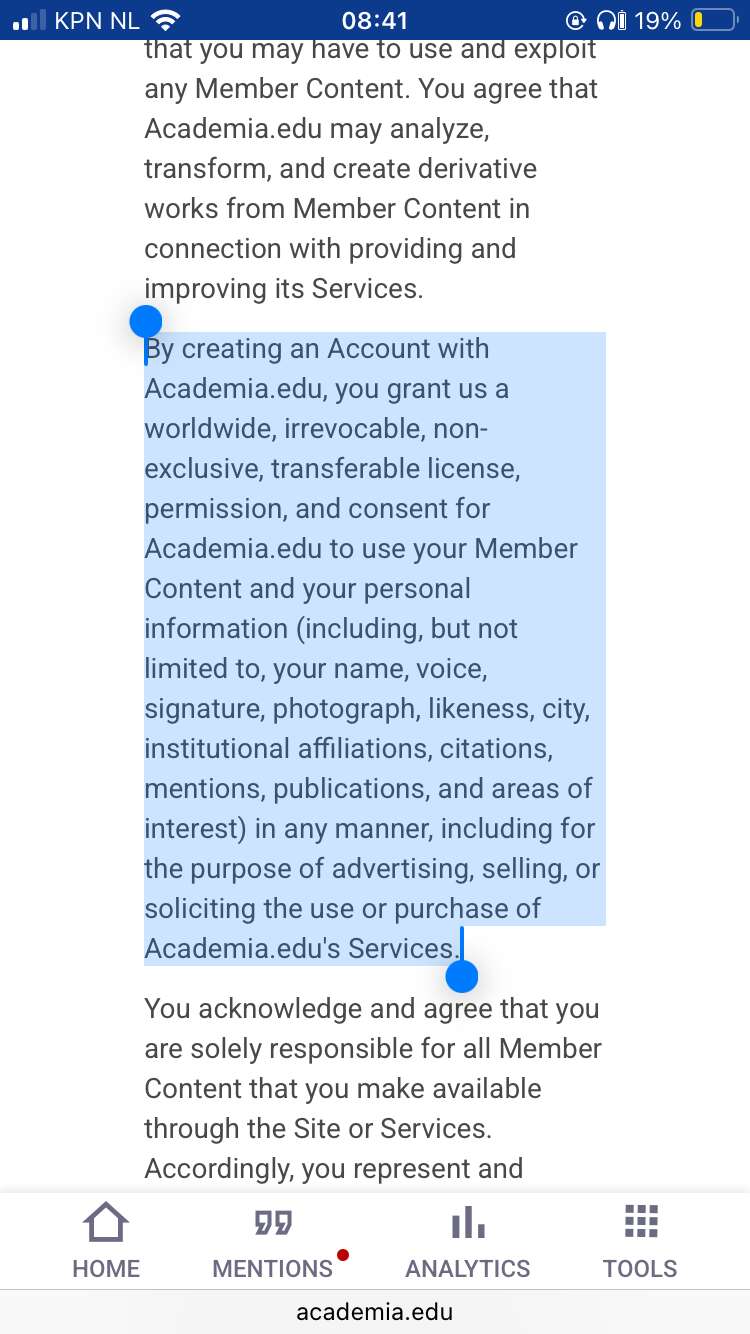 Voor iedereen met een academia.edu account, lees de nieuwe voorwaarden die je nu moet accepteren even goed: