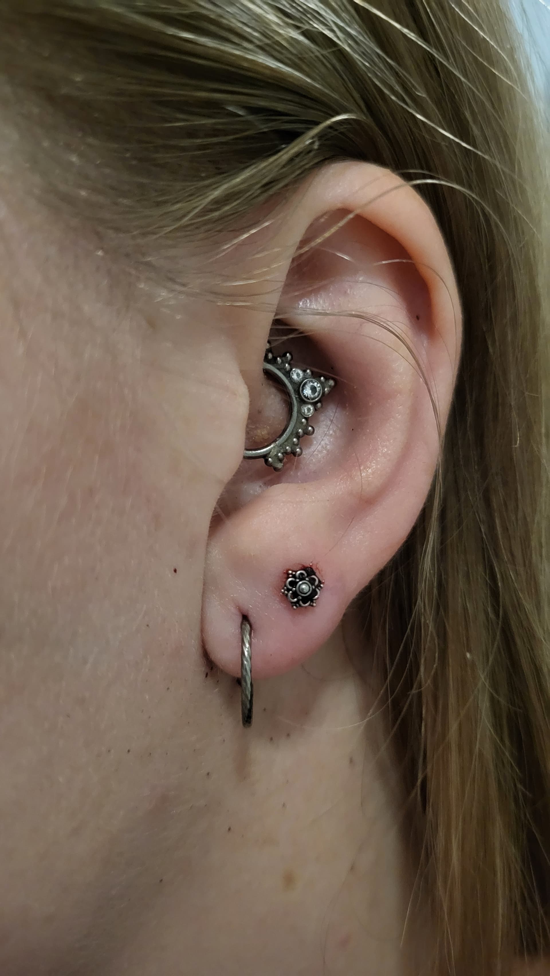 Een tijd geleden een daith laten zetten! Heel blij mee. Heb wel een klein vochtbultje, maar ik moet er ook minder aanzitten + beter droogmaken na het douchen.