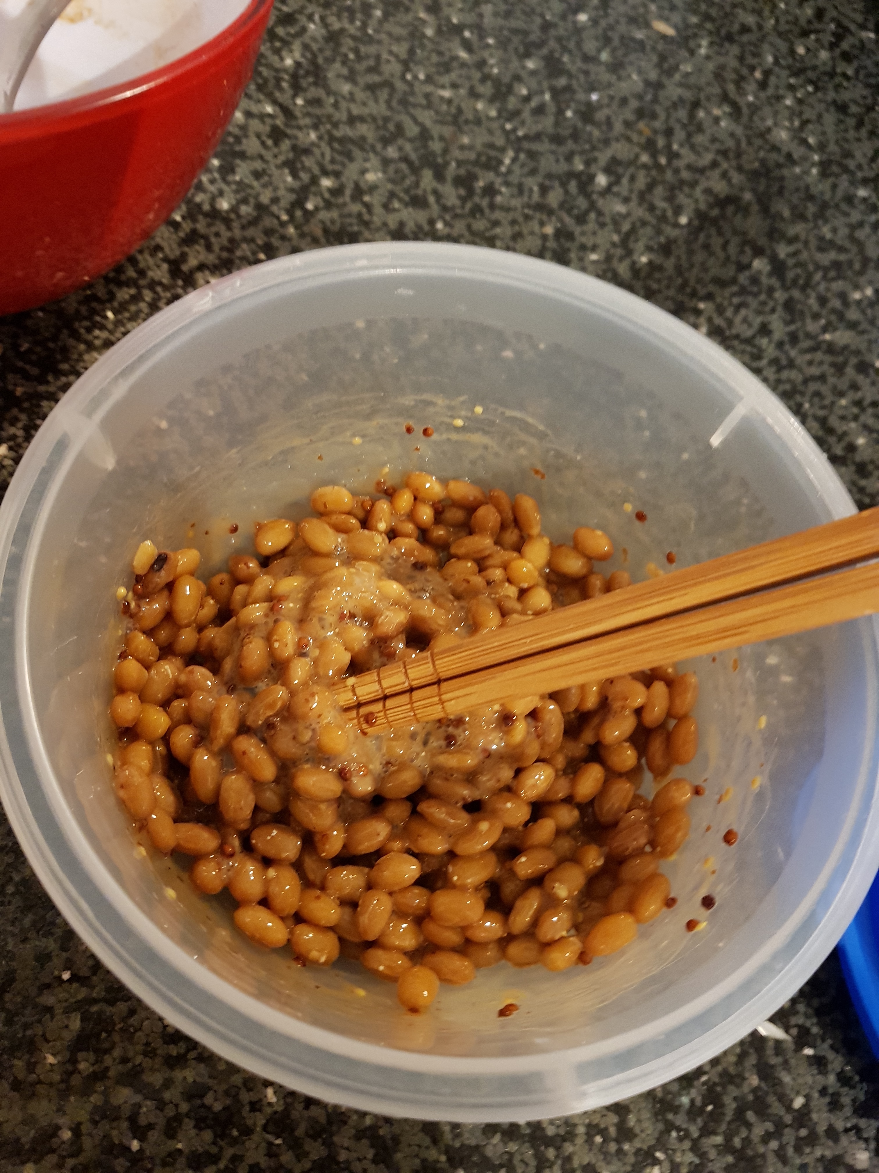 Ooh ik heb toevallig ook een pakje natto liggen voor het ontbijt van morgen! Ik ga de mijne met rijst, avocado en vegan eidooier eten!