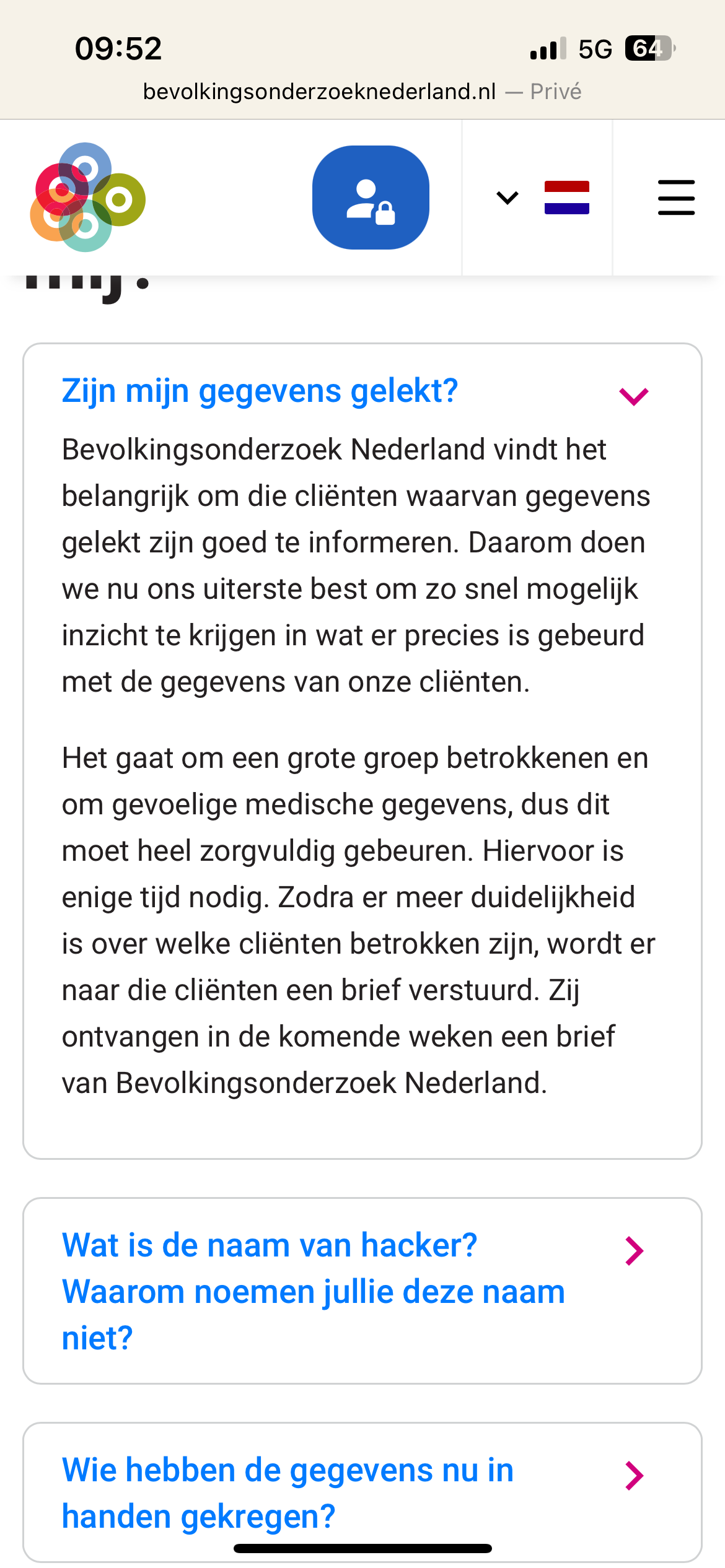 Nou, mijn gegevens zijn ook door het gehackte lab verwerkt dus neem aan dat ze gelekt zijn. Vind het ook een beetje raar dat mijn huisartsenpraktijk geen bericht oid op de website zet, aangezien hun patientgegevens bij dat lab verwerkt zijn.