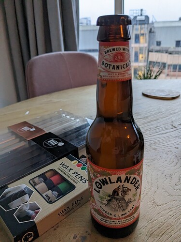 Een puzzel als hint, glutenvrije brownies en koekjes, kaarsen met waxpennen om ze te versieren, een grandprix spelletje en een biertje ![]()