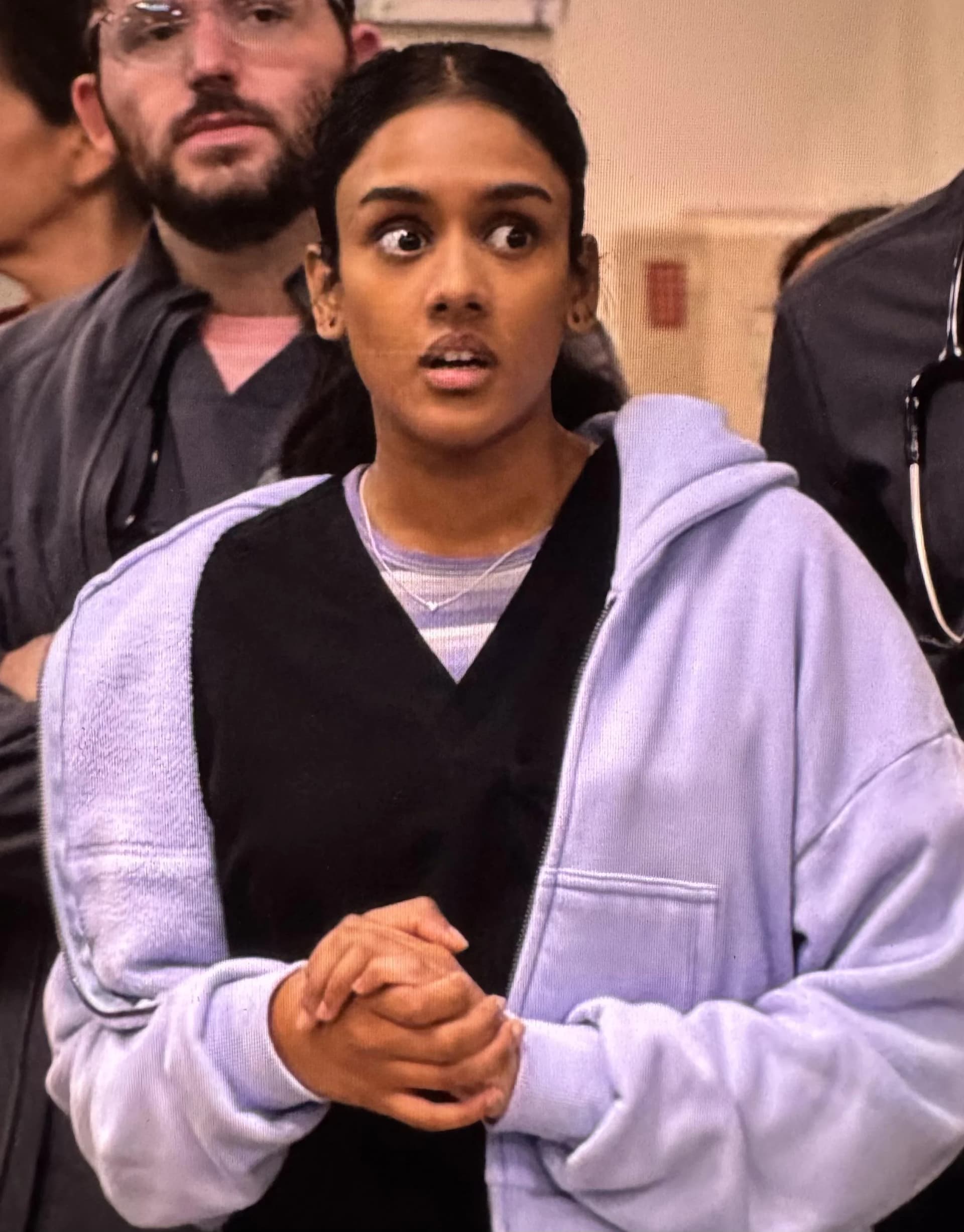 The Pitt: Santos trekt altijd een verveeld gezicht als ze naar patiƫnten luistert. Nu bij die dove patiƫnt is dat extra irritant want zij kan er niets aan doen dat alle hulpmiddelen niet goed werken en heeft sowieso recht op goede zorg.