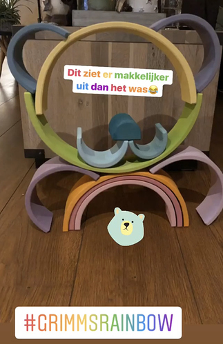 @Wonderland ik ben ook fan van de Grimm’s regenboog! Wij hebben die met felle kleuren en wordt echt veel mee gespeeld (zowel door K als door z’n ouders…)