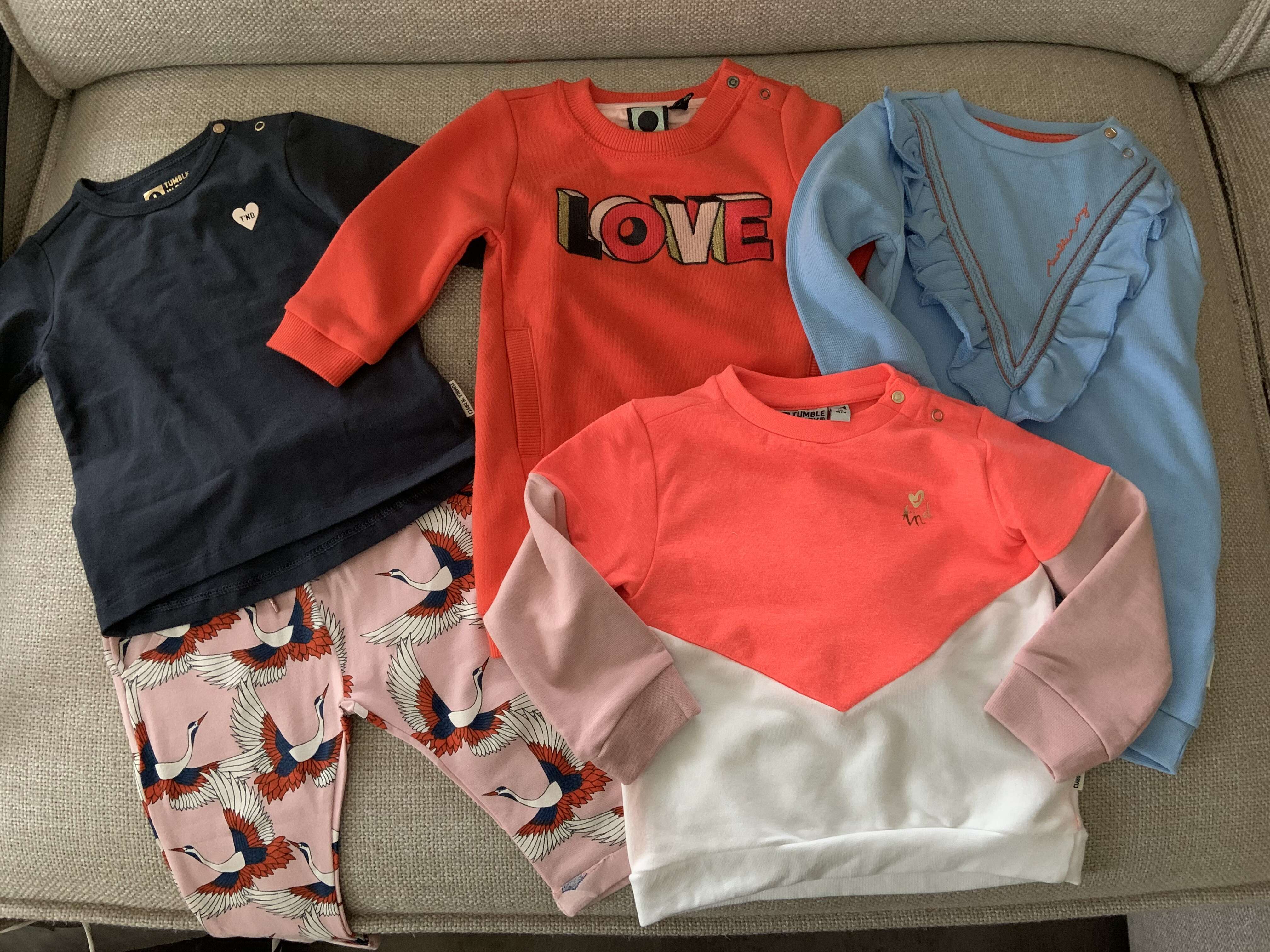 Ik vind het iets ruim vallen. De meeste kleding die A nu aan heeft is maar 62, maar ze heeft van TnD nog wel 56 aan. Dat zit dan ook echt precies goed, kan ze niet zo heel lang meer aan.
