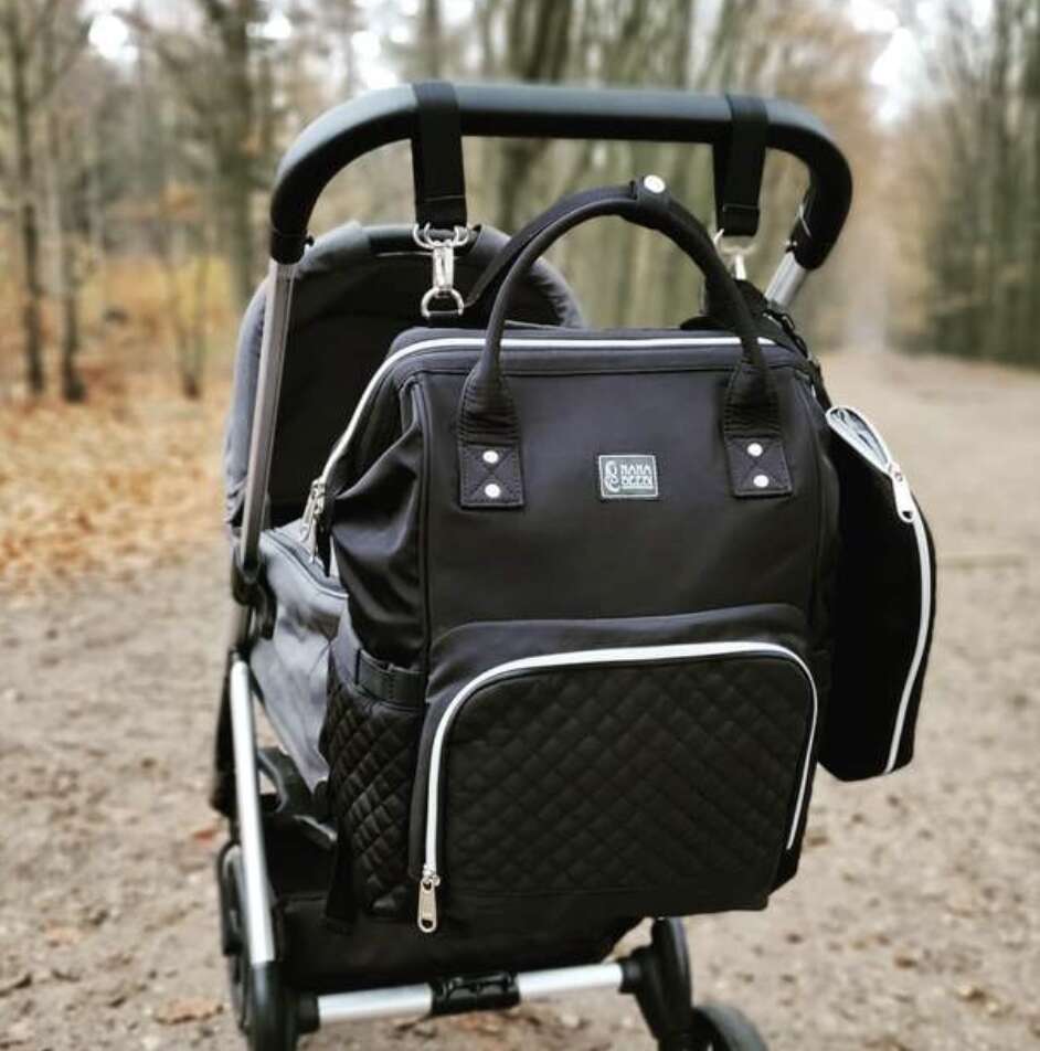 En ik heb op mijn luiertas drukknoopjes waarmee je de tas zou kunnen vastmaken aan je wagen maar die laten telkens los