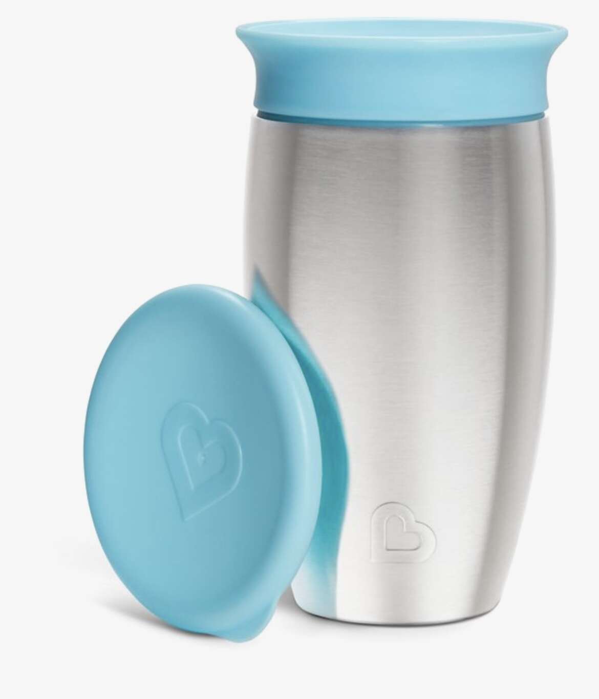 Ik doe altijd de handvatten van de plastic munchkin beker om die van rvs dan kunnen ze beter vasthouden. Is gewoon dezelfde maat.