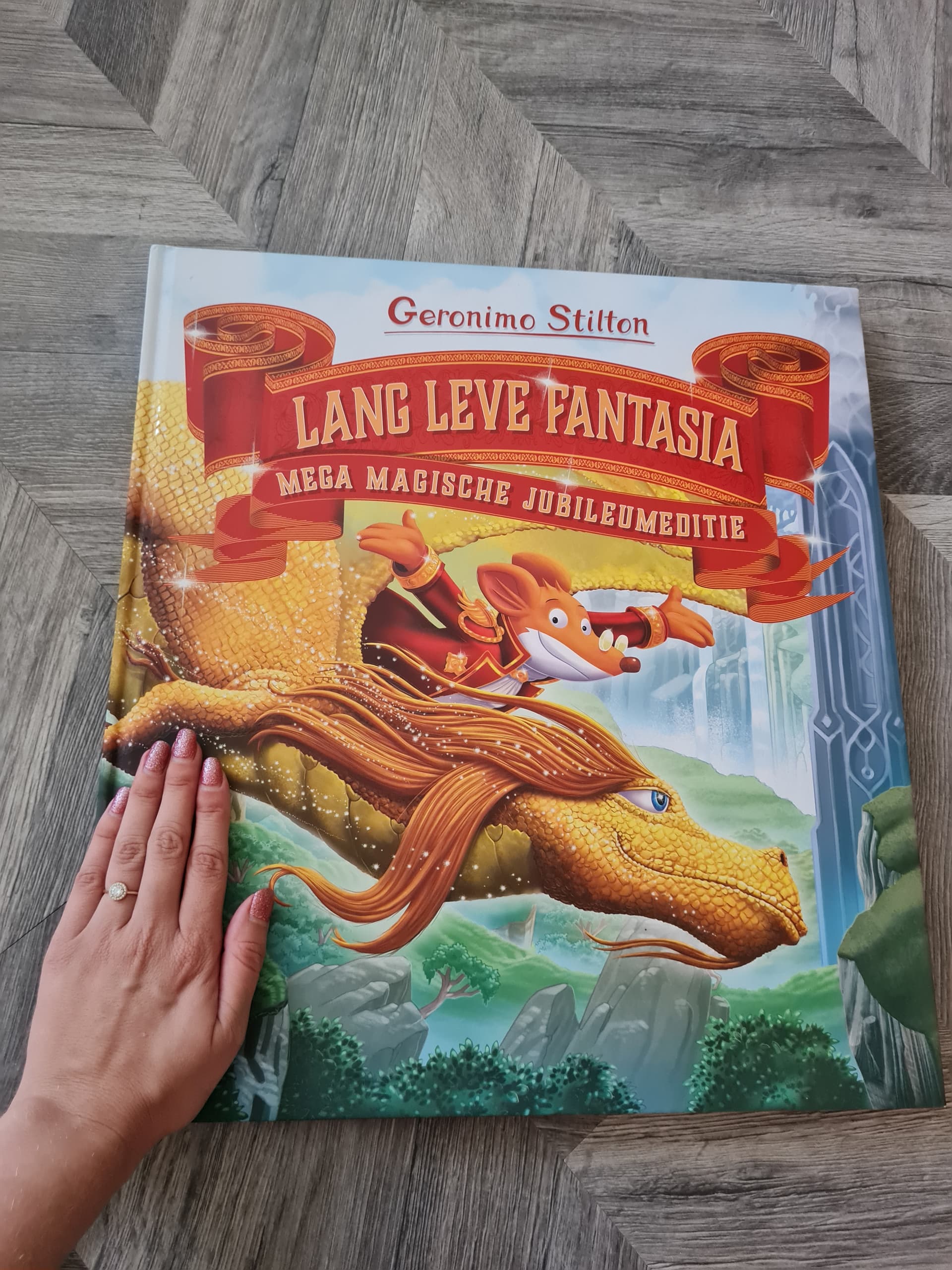 Mega betekent in dit geval ook echt mega haha. Hand for scale want je ziet het niet heel duidelijk op een foto. De fantasia boeken zijn hier in huis heel populair dus denk dat hij dit boek ook echt geweldig gaat vinden.