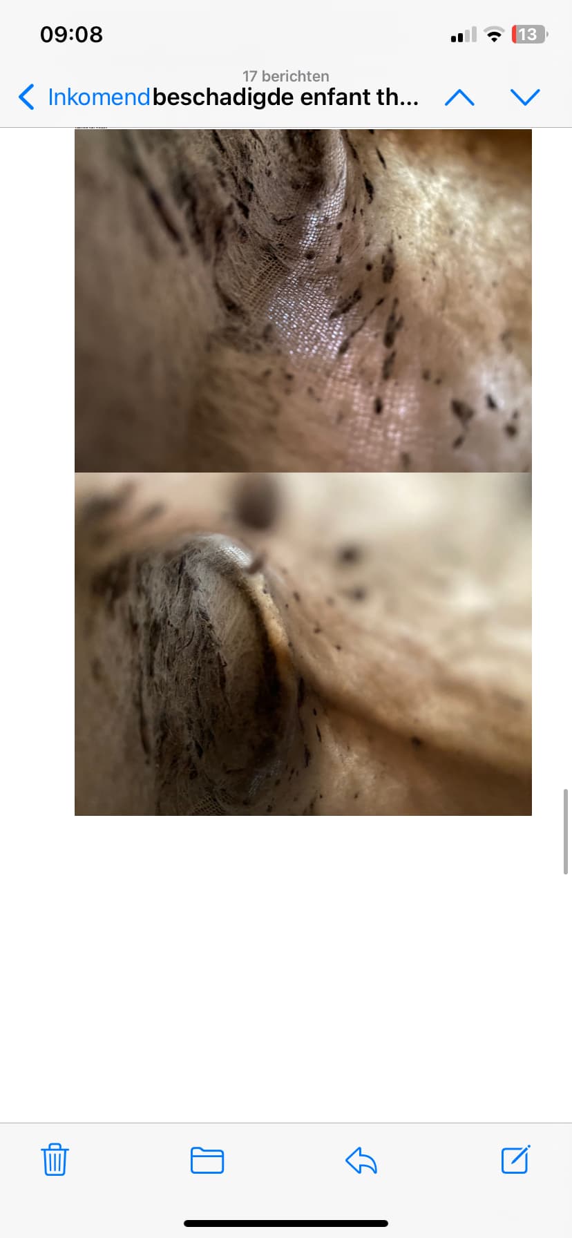 Oh wat vervelend zeg, dit herken ik helemaal niet. De voering wordt wel platter, maar gaat niet stuk. Ik heb zijn te kleine juist van de week helemaal schoon gemaakt en in de kast gezet voor z’n zusje straks.