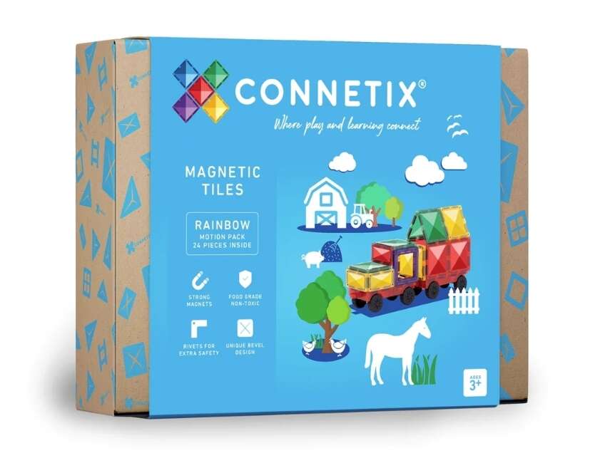 Connetix sale. Opa’s en oma’s geven de motion pack en de starter set. De bodemplaten krijgt ze van ons.