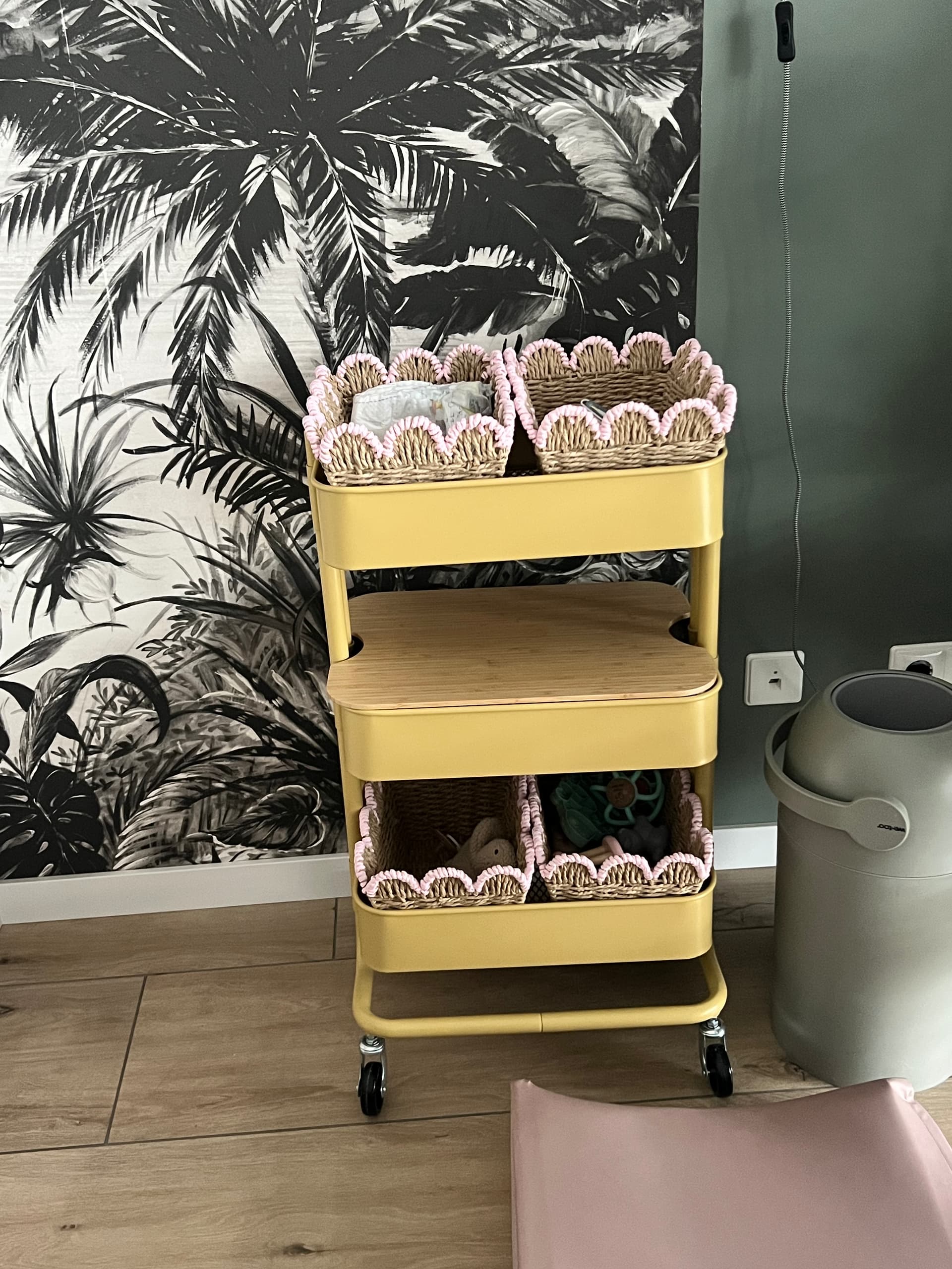 Deze mandjes van de Action voor in de IKEA trolley. Staat net wat netter