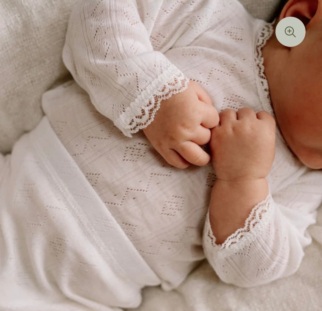 Hvid, voor de newbornshoot. Hoop dat 'ie wel echt (zacht)geel is en niet een variant op beige.