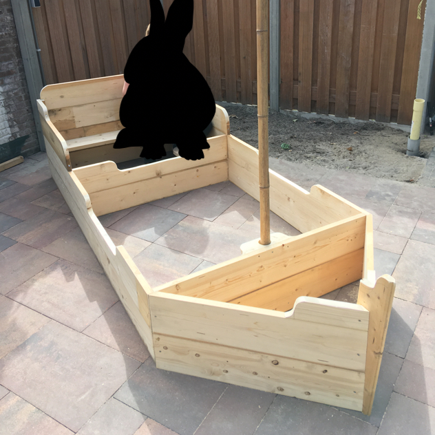 Edit: die punt voorop is de ‘boeg’ van de boot. Die maak ik nog dicht met een klapluik zodat daar al het speelgoed onder kan! En daarop komt zo’n mooie grote verrekijker.