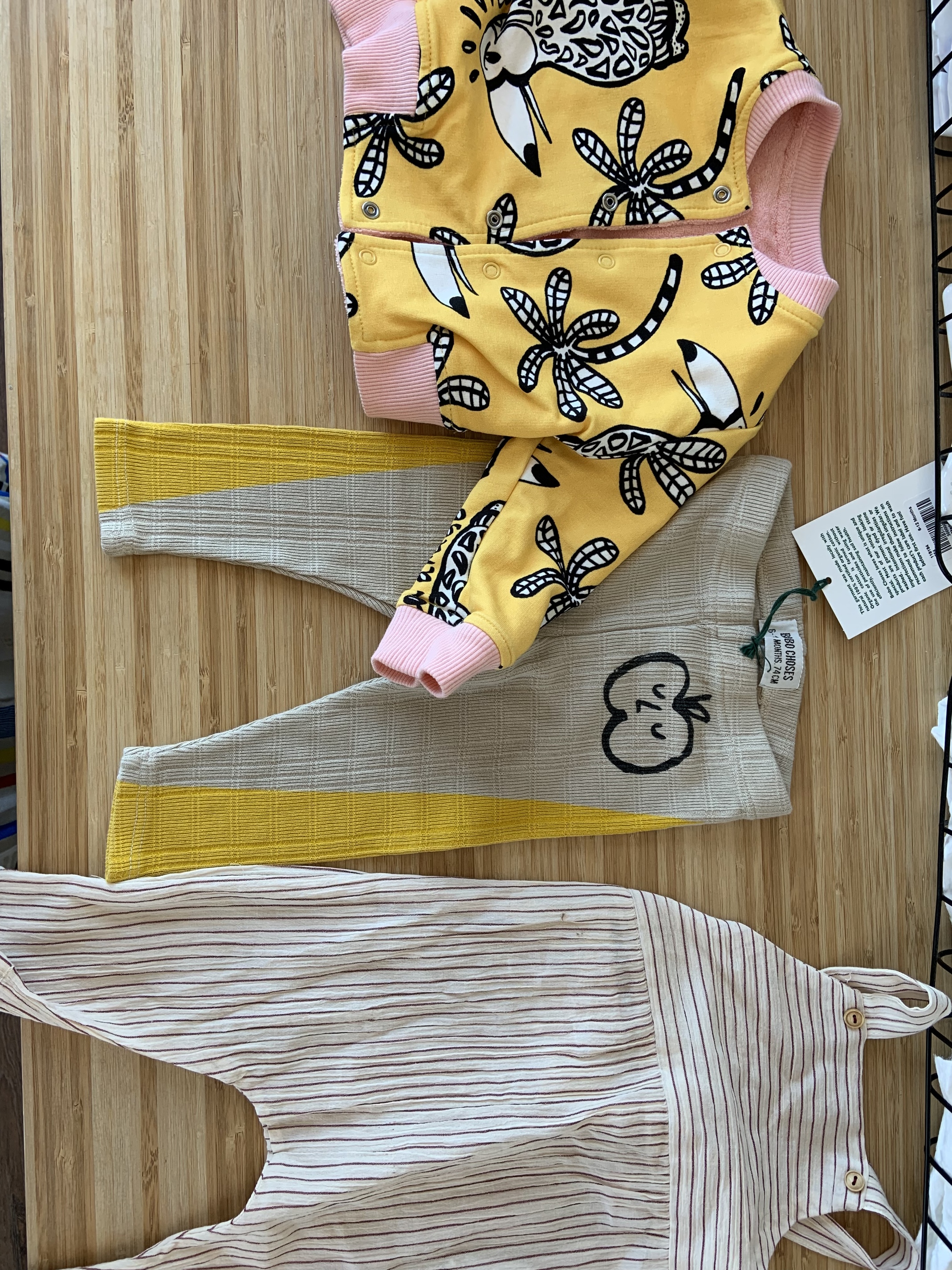 Love de sale. Alles op de groei gekocht trouwens. Jasje is van Ammehoela, broekje Bobo Choses en tuinbroekje Zara. Jasje is ook andersom te dragen, dan is soort roze badstof.