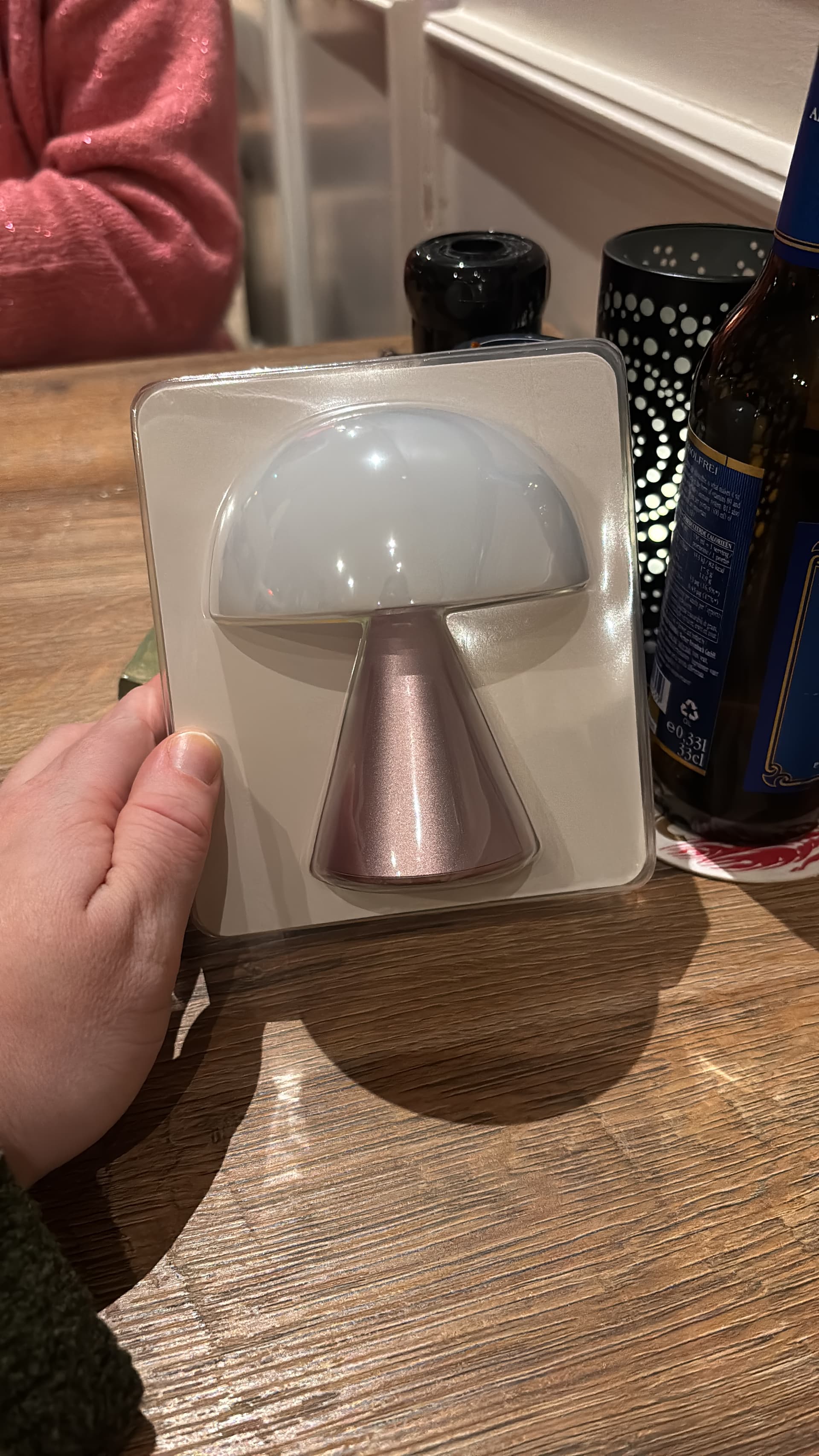 Nieuwe sloffen en een klein, oplaadbaar lampje dat je op verschillende kleuren kan instellen.