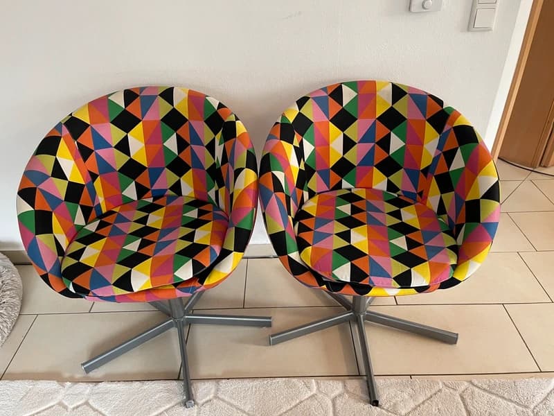 Ga twee eettafelstoelen vervangen door deze, omdat ik meer kleur in huis wil, en omdat ik ook een eettafelstoel gebruik als ik thuis werk en deze hopelijk iets comfortabeler zijn daarbij (tweedehands IKEA via Vinted, ga ze wel pas volgende week ophalen, hoop dat ik niet gescamd ben