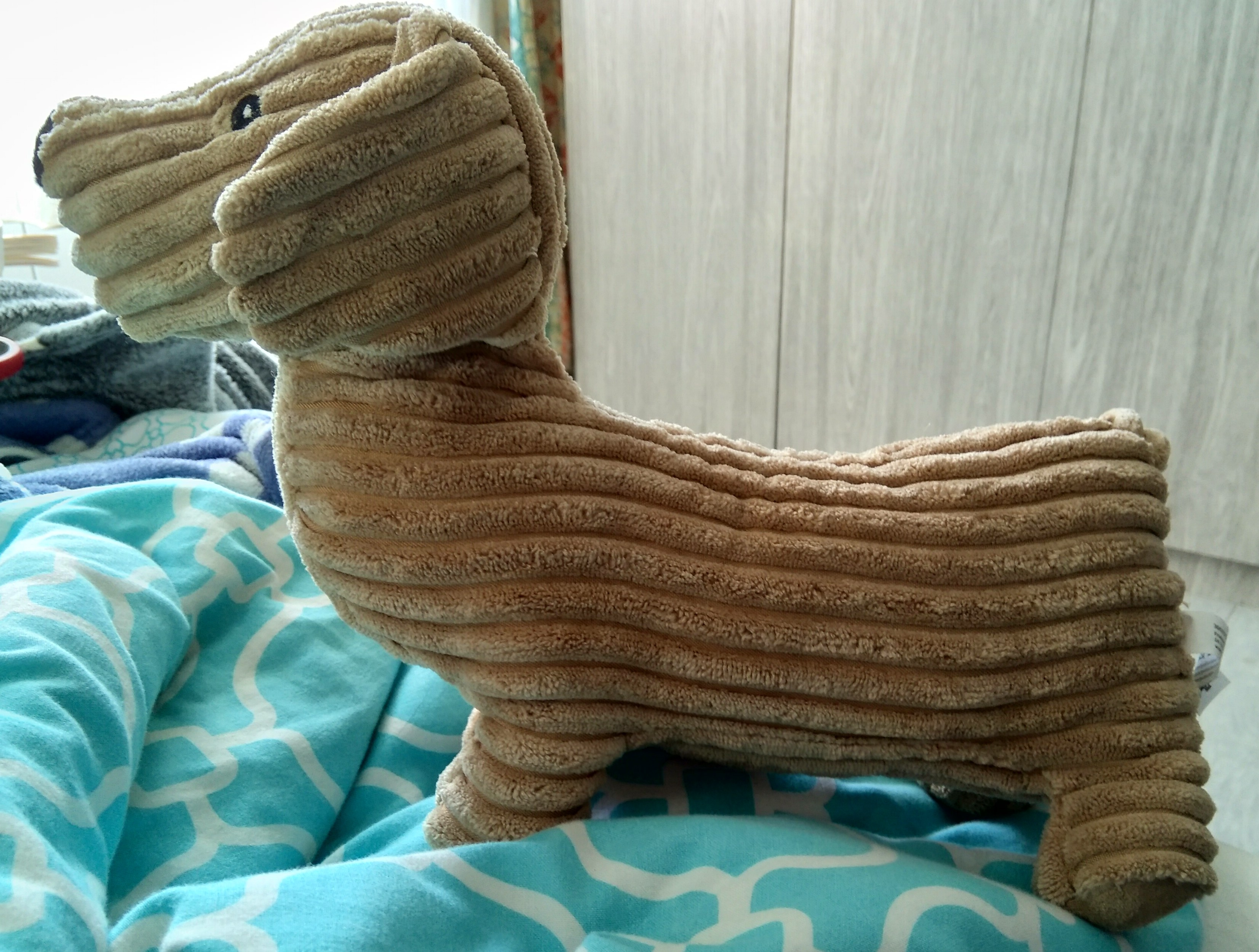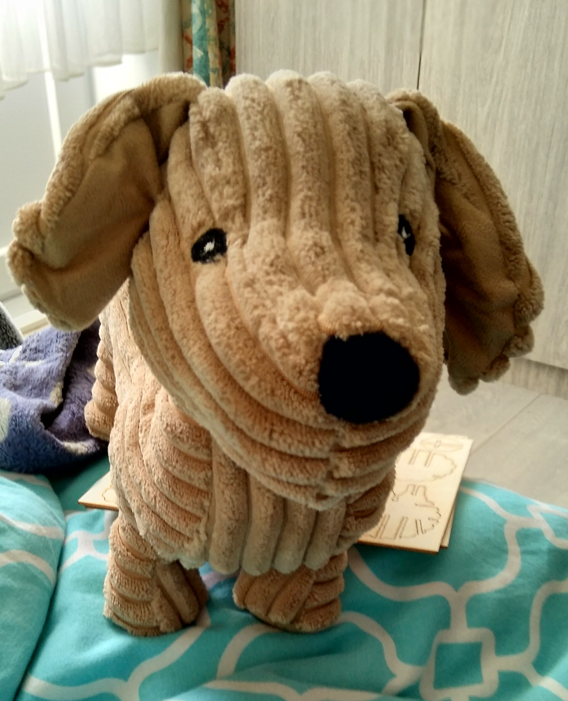 6 euro, ze hadden hem ook nog in paars en rood dacht ik maar vond die niet zo mooi. Van neus tot staart is hij 30 cm, weet niet of de foto hem tot zijn recht brengt