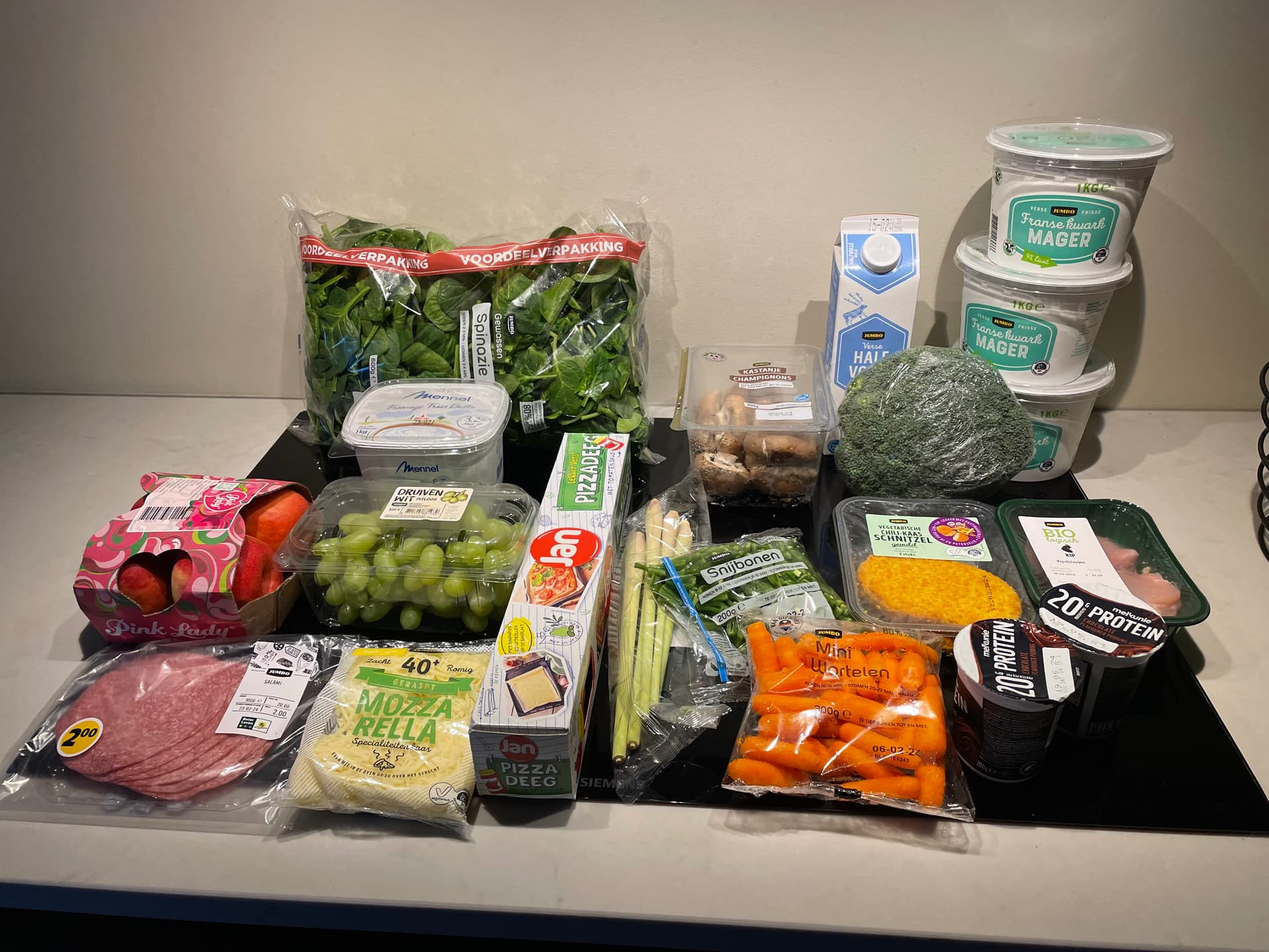 €63,12. A.s. vrijdag nog wel kaas op de markt halen. Ik heb nog voor 2 avonden al sowieso eten in huis.