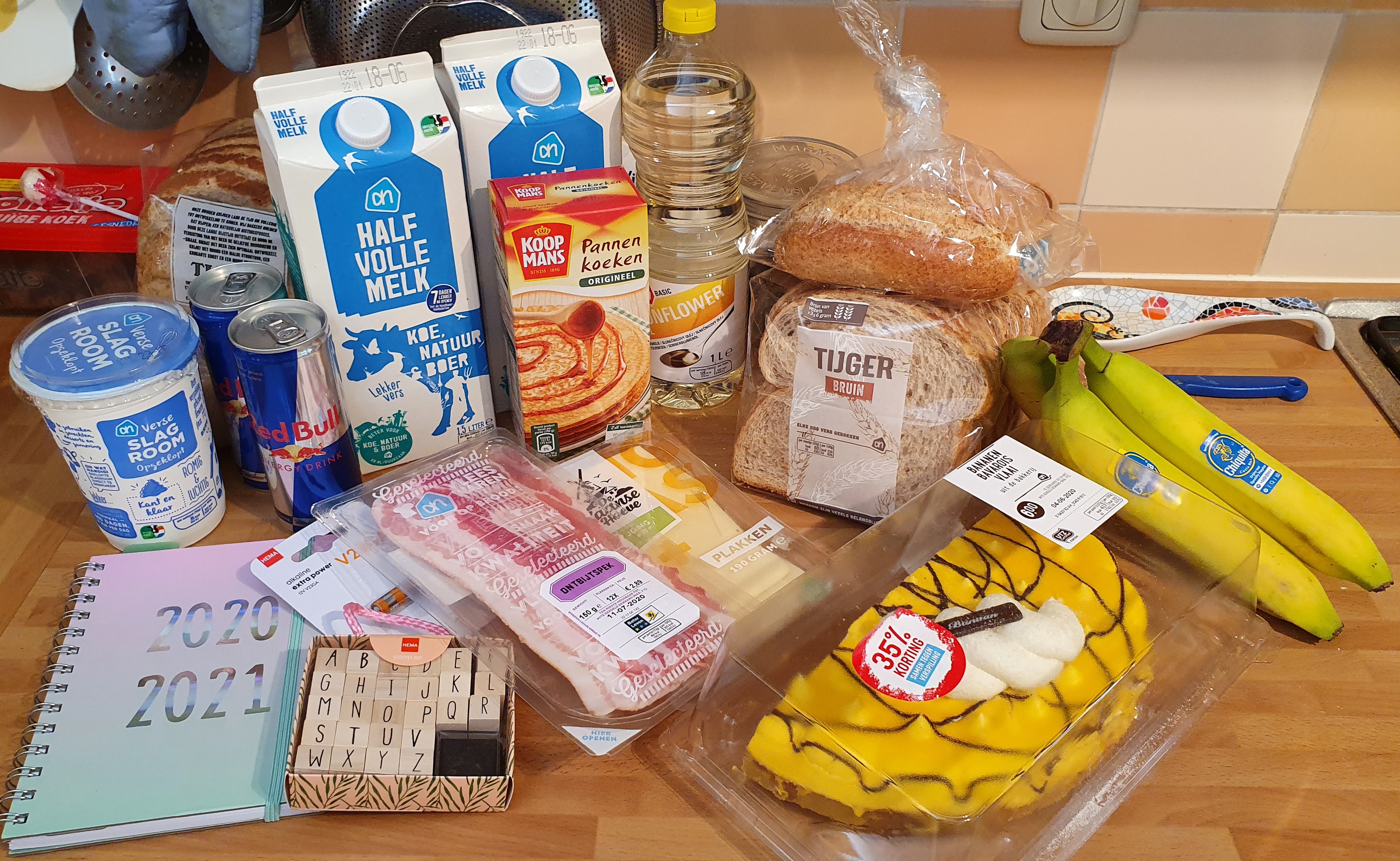 Je kan niet alles heel goed zien, maar er ligt ook nog een maaltijd salade achterin de hoek.