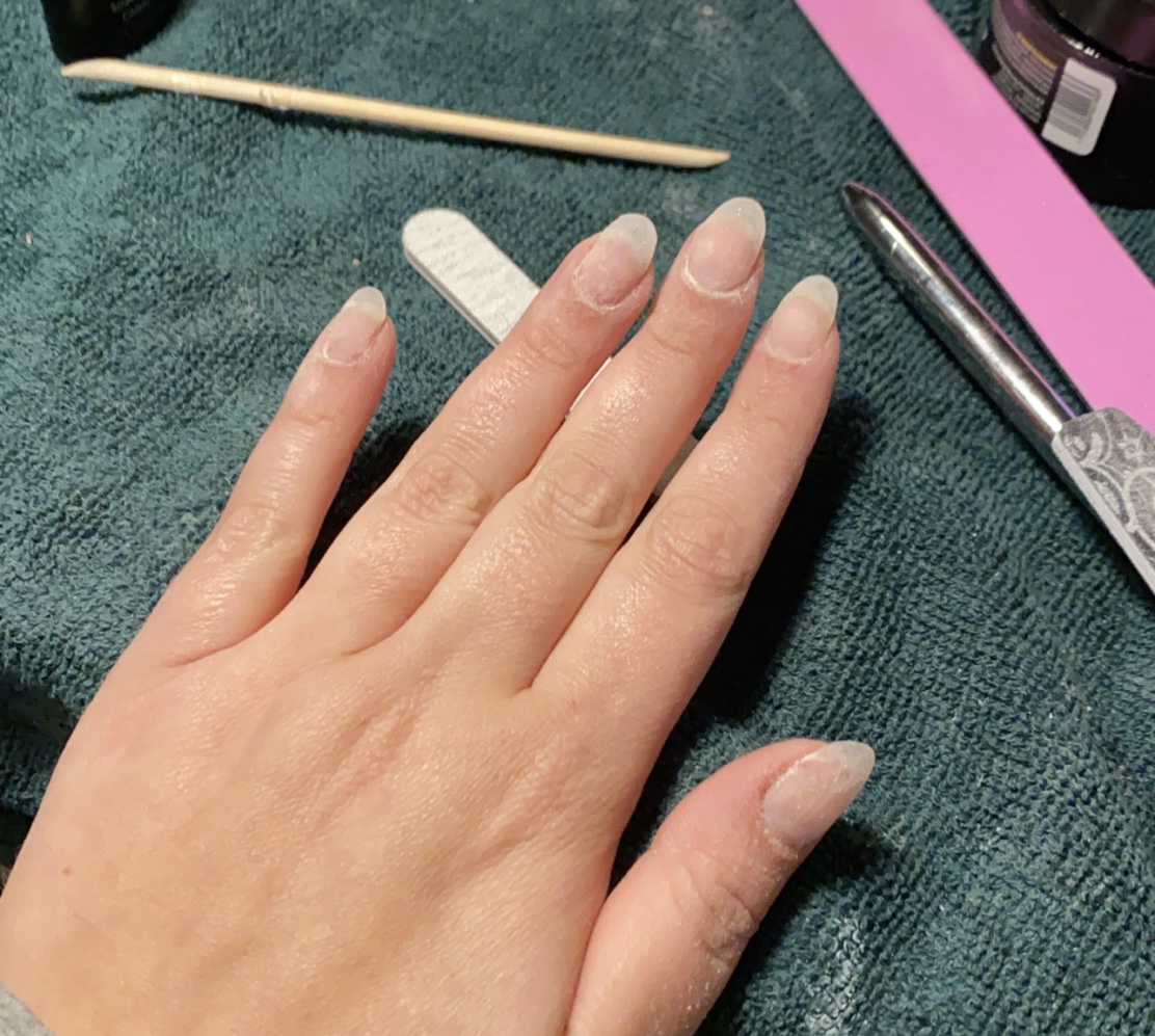 Ik heb honderden youtube filmpjes gekeken hoe het moest haha. Heb als eerst gewoon mijn nagels ‘geprept’ dus gevijld op het nagelbed en met alcohol schoongemaakt zodat er geen olie of vetten meer opzitten. Toen een primer (van ali), een topcoat (van ali). Vervolgens stickers gebruikt, als je googelt ‘nagel vorm stickers’ vind je ze (ook van ali). Daarna mijn nagels verlengt met builder gel (bij een of andere groothandel, moet nog uitzoeken welke het fijnste werkt), vervolgens nog een keer alles met builder gel doen, zorgen dat ook van de zijkant mooie bolling heeft. Toen alles heel erg gevijld, dan heb je het resultaat van de eerste foto en vervolgens een lakje opgedaan. Alles met een LED lamp trouwens.