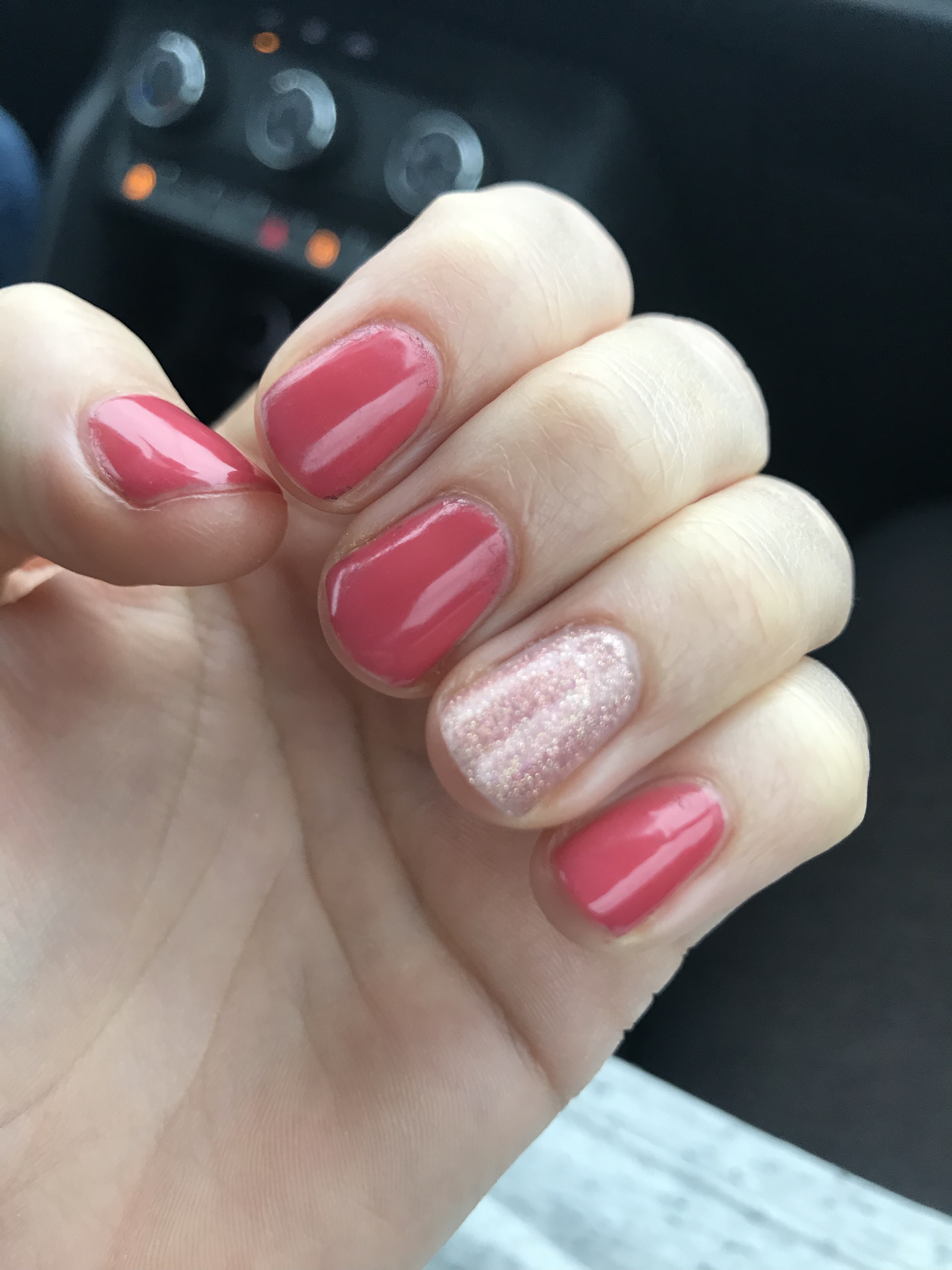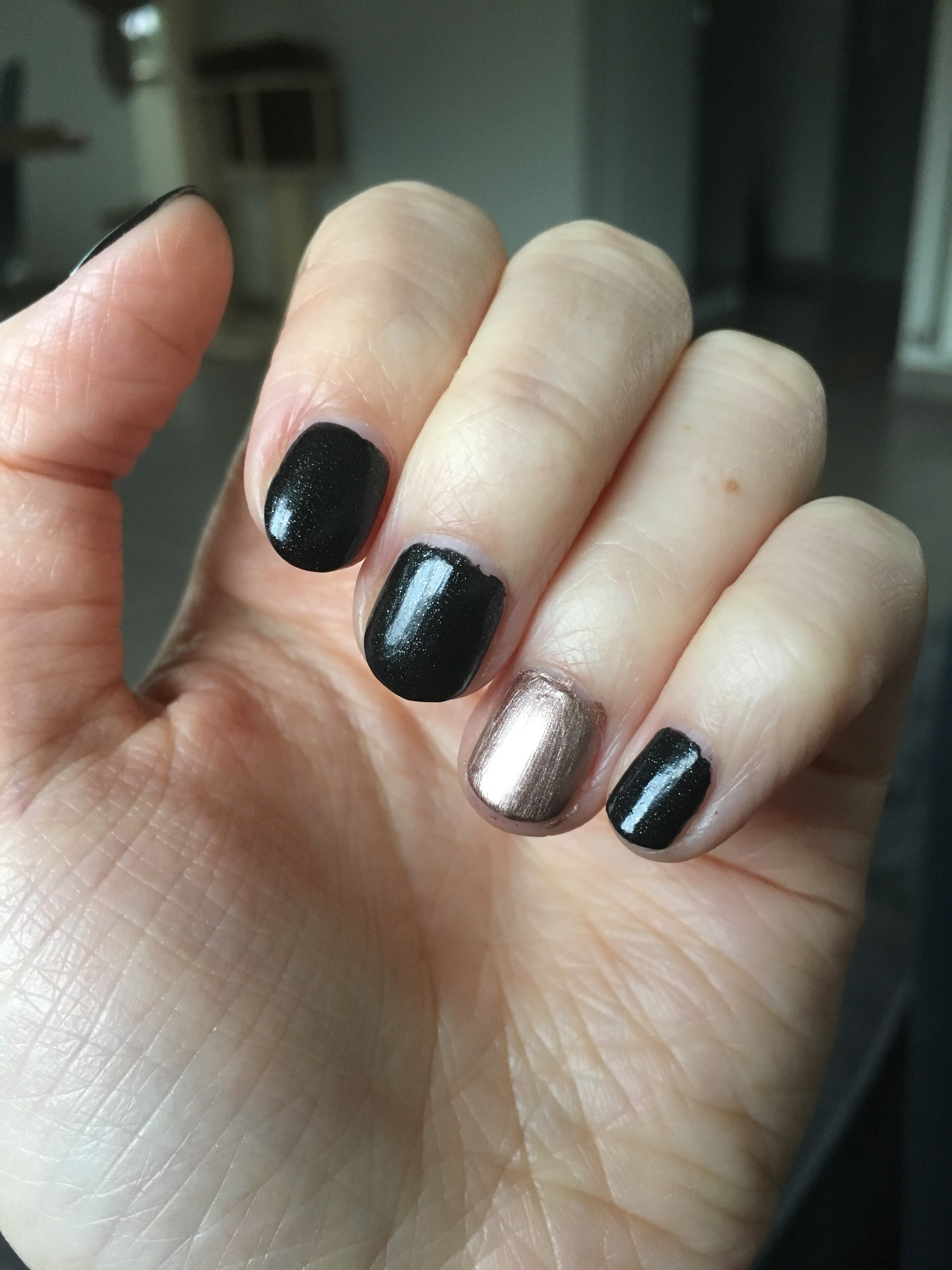 De helft was helaas afgebroken dus heb ze kort laten vijlen en voor het eerst gellak. Vind het erg mooi en tot nu toe erg tevreden!