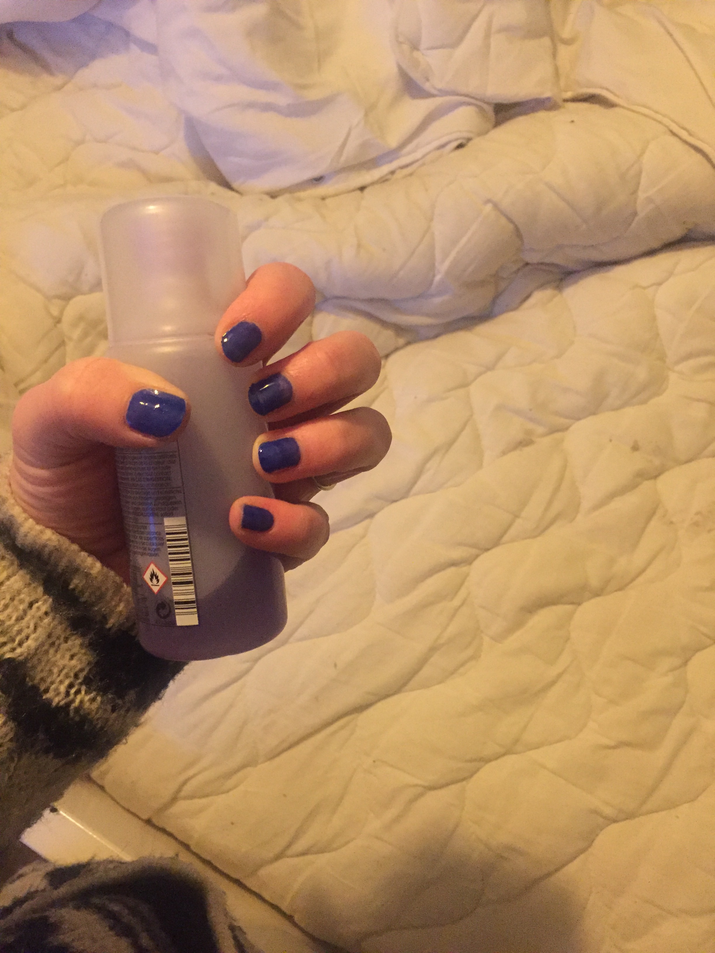Mijn acrylloze nagels, zo kort en broos en qua structuur net een maanlandschap. Dit alles wilde ik verbloemen door blauwe nagellak (why?). Maarja, nu geen zin meer om het eraf te halen.