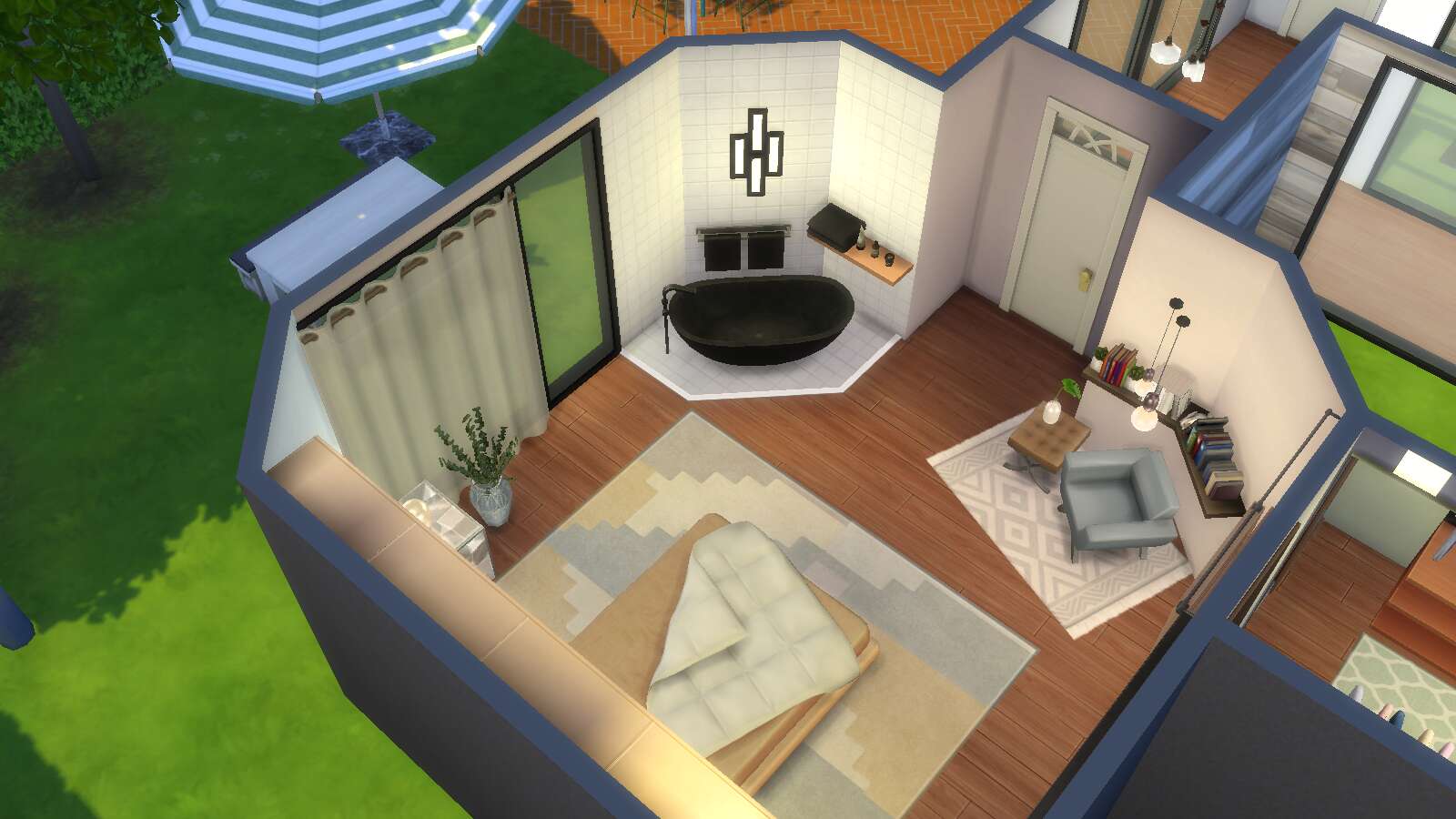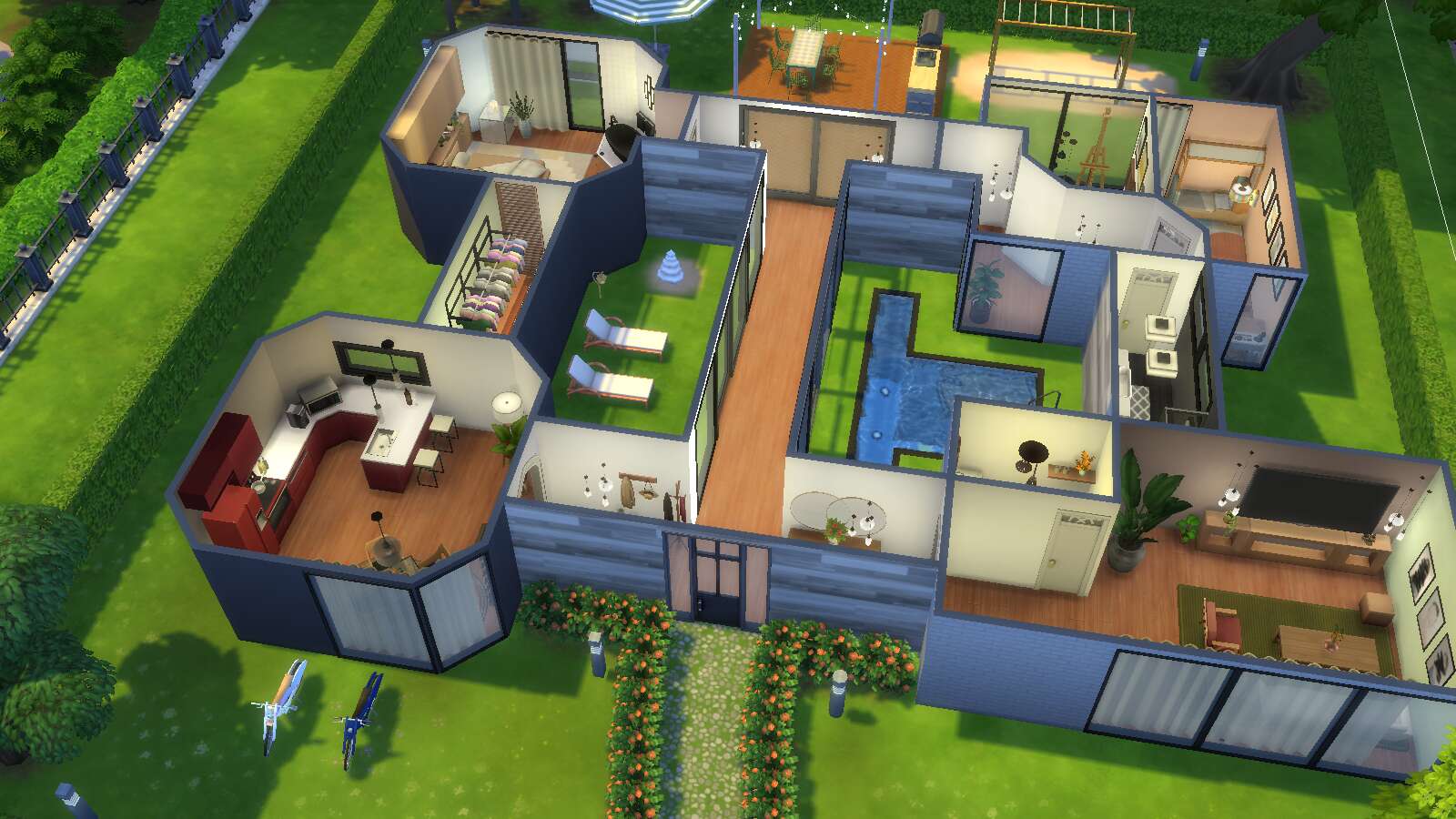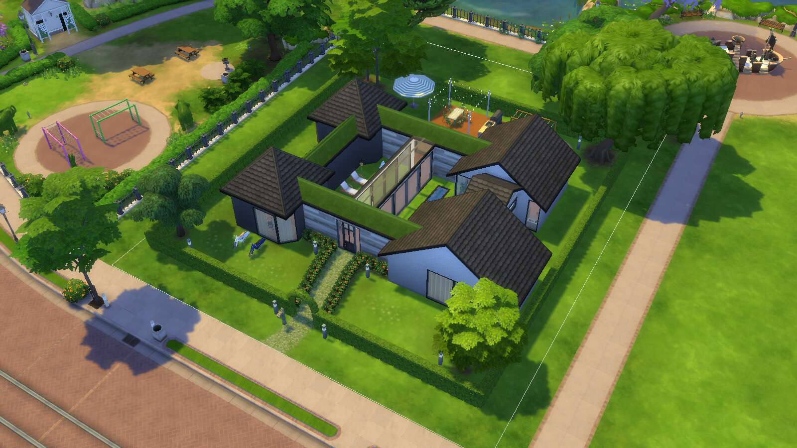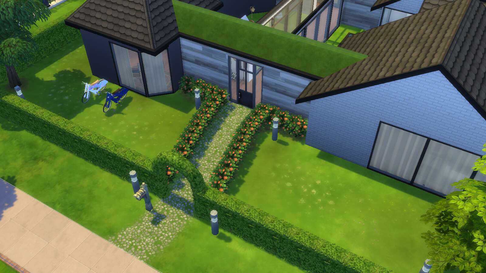 Dit is de mijne geworden (met heel veel cc)! Was echt aan het kloten met het dak haha. En ik had weinig zin om te landscapen dus de tuin is vrij basic