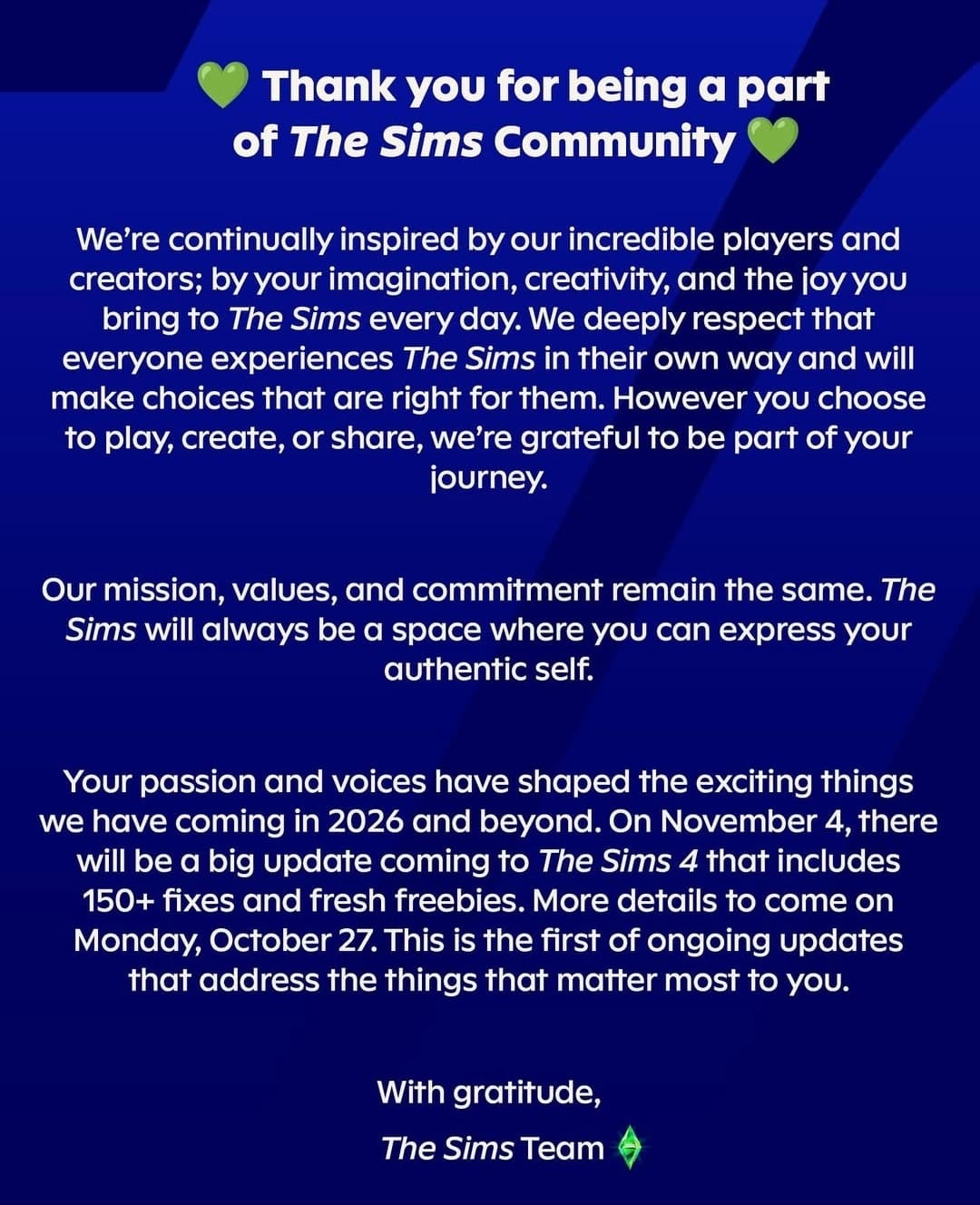 Ik denk dat dit ook misschien betekent dat het einde van Sims 4 in zicht is? Bij bijv Baldur’s Gate 3 was het moment dat ze de boel officieel opengooiden voor mods, ook het moment dat ze zelf klaar waren met dingen ontwikkelen voor de game.