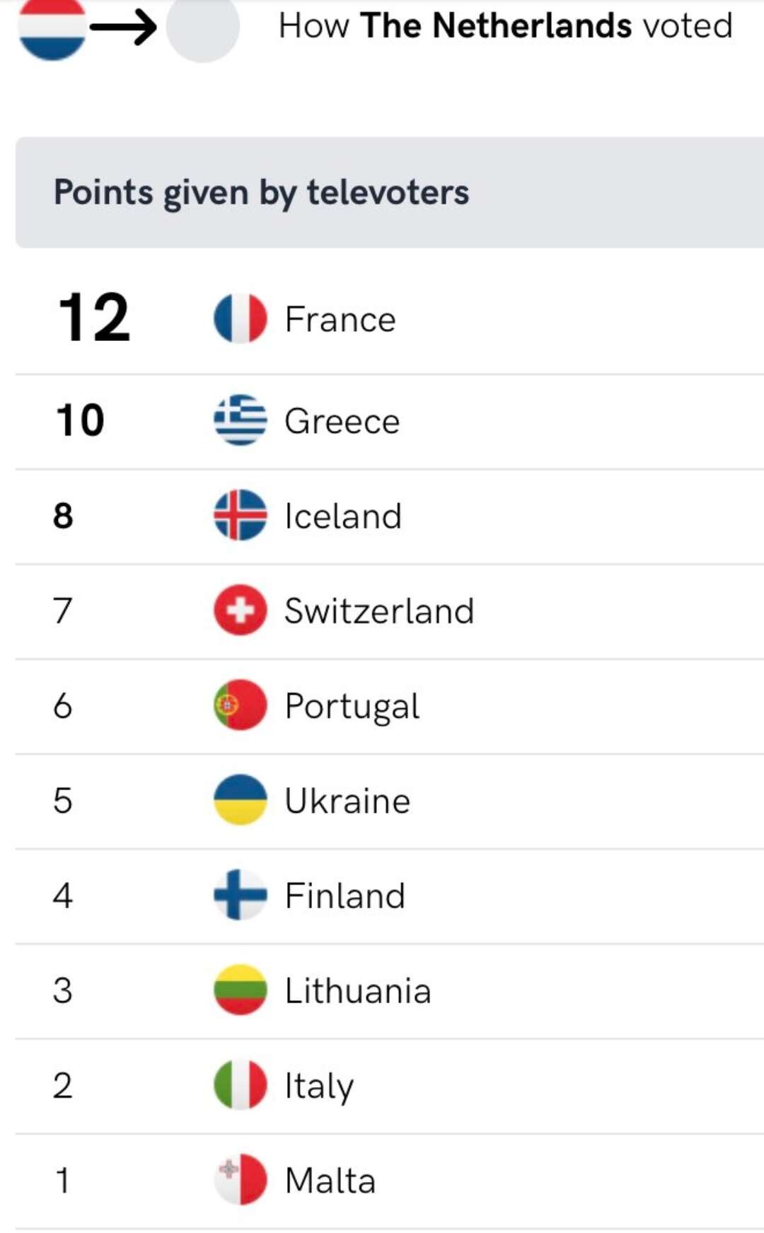 Wel echt opvallend dat wij het land zijn wat Italië de minste punten geeft van iedereen.