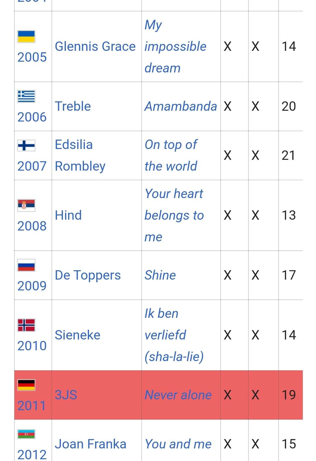 Dat vond @Druppels @Blush ja ik ook! Ook heb ik vrienden in Engeland die zeggen dat ze het echt te grappig vinden dat iedereen in het Engels zingt en wint, terwijl het alleen van Engeland echt de moedertaal is en zij krijgen niks