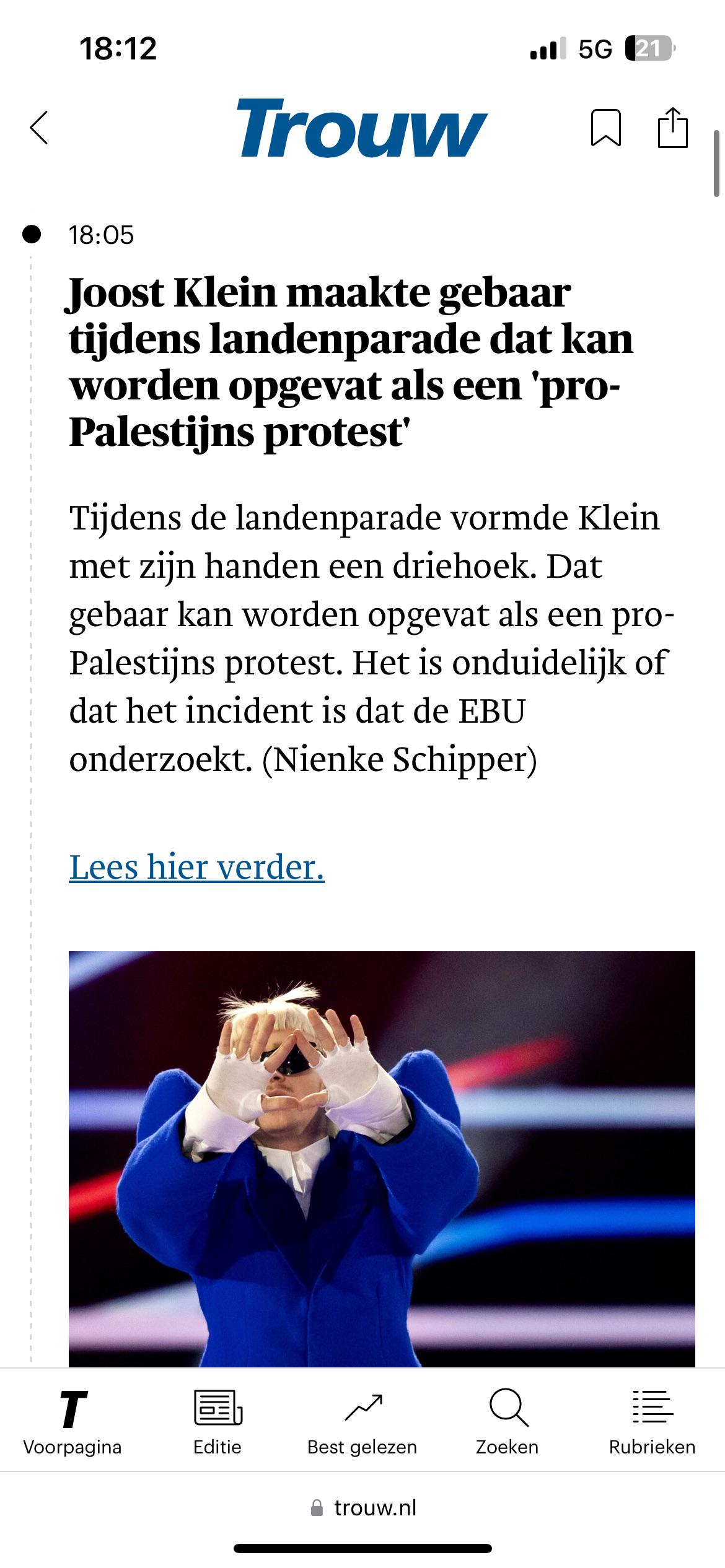 Ja dit is dat zo een smet op het songfestival. Hoop dat anderen zich ook terugtrekken of een statement maken.