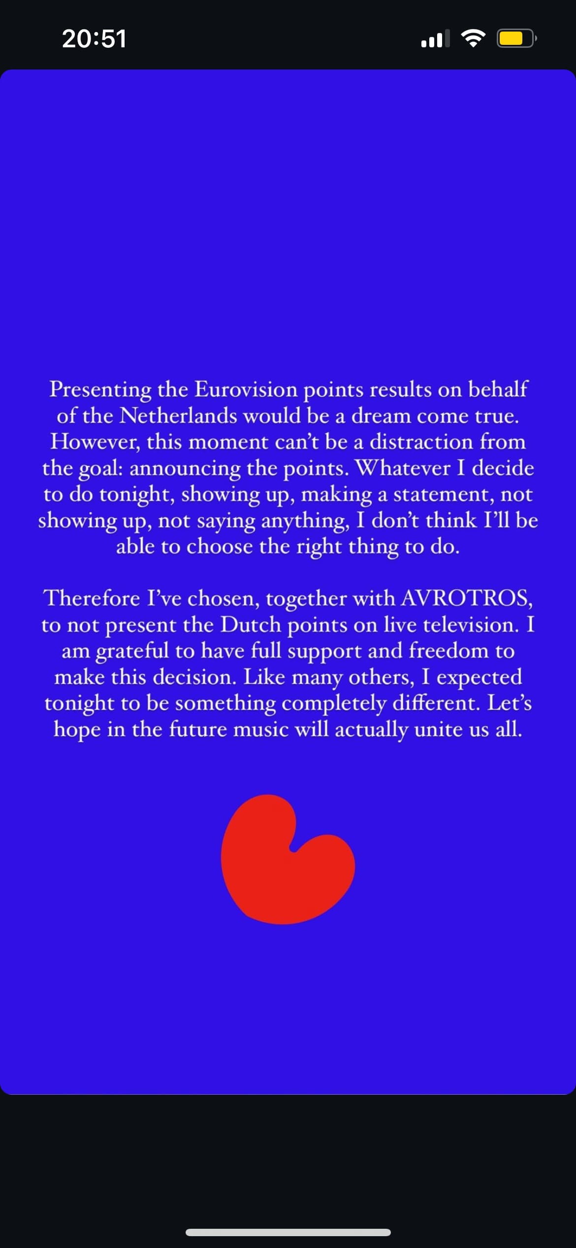 Oh, ik vind dit nou juist de lafste keuze van hun. Ik begrijp dat je in een vervelende positie wordt gedrukt en onterecht veel kritiek krijgt, maar je staat er tevens om Nederland te vertegenwoordigen. En het komt nu over alsof hun zich distantieren van alles omtrent Joost.