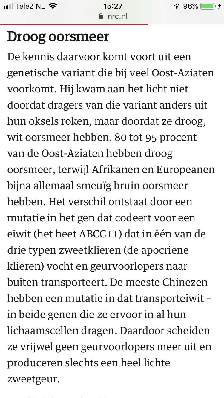 - Ik heb droog oorsmeer en geen/weinig zweetgeur en ben Aziatisch
