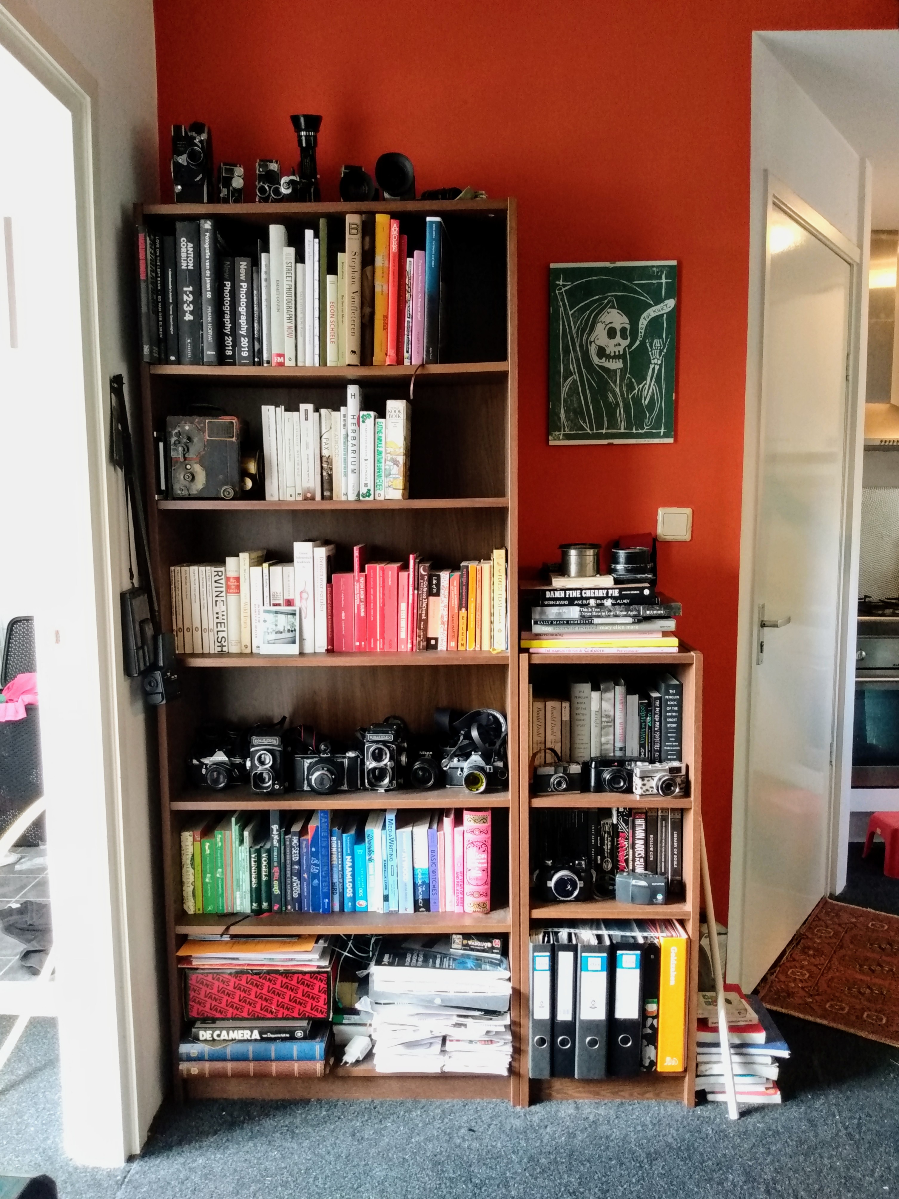 Ik heb helemaal geen kasten maar overal random stapels (soms in een kledingkast, plank inbouwkast) etc. En alles ligt eigenlijk op dit moment op noodzakelijkheid. Zowel studieboeken als gewoon ‘leesboeken’.