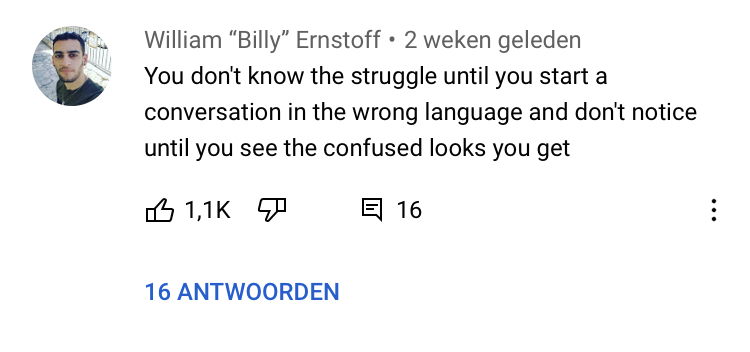 Haha ja ik heb dit weleens gehad in zuid Amerika. Ik ging al weken met vooral Amerikanen en Britten om en wekenlang alleen Engels en Spaans gesproken. Op 1 avond toen ik al wat wijntjes op had stak ik ineens een heel verhaal in het Nederlands af en ik had het ook niet direct door toen ik hun verwarde gezichten zag. Dacht echt dat ik Engels aan het praten was