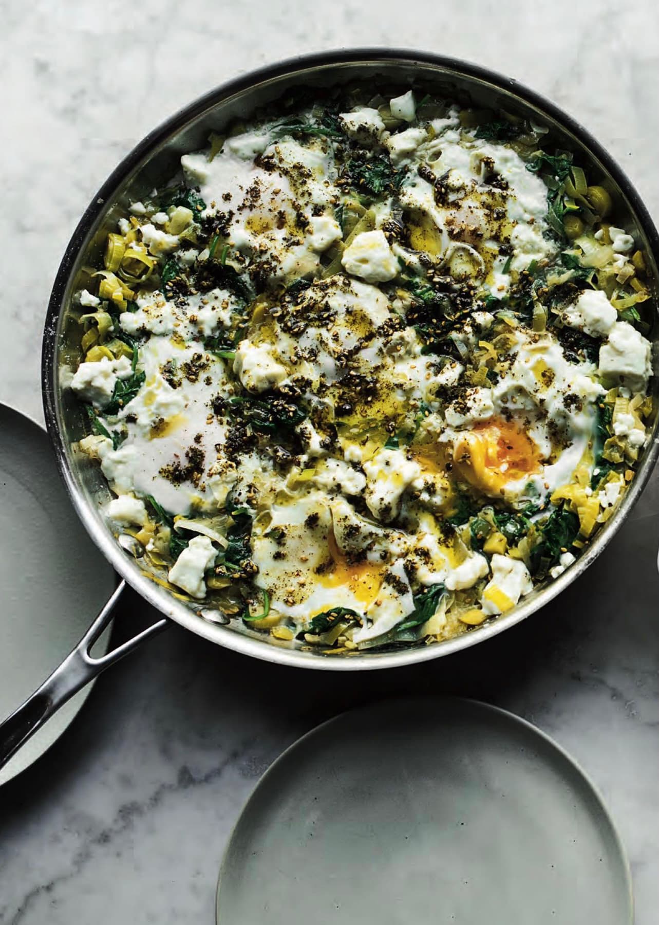 Gesmoorde prei met eieren en za’atar, recept van Yotam Ottolenghi