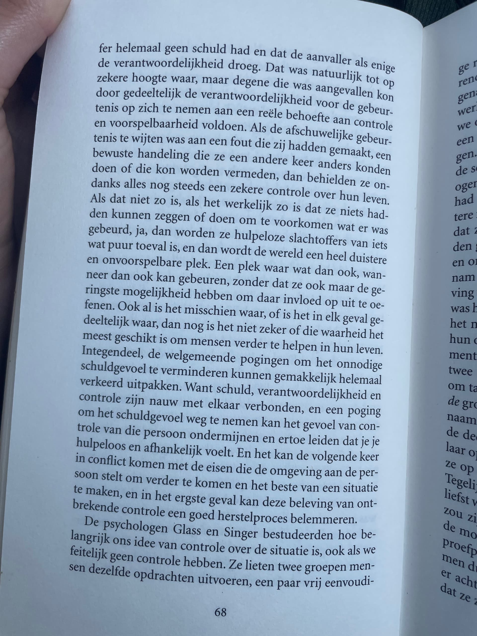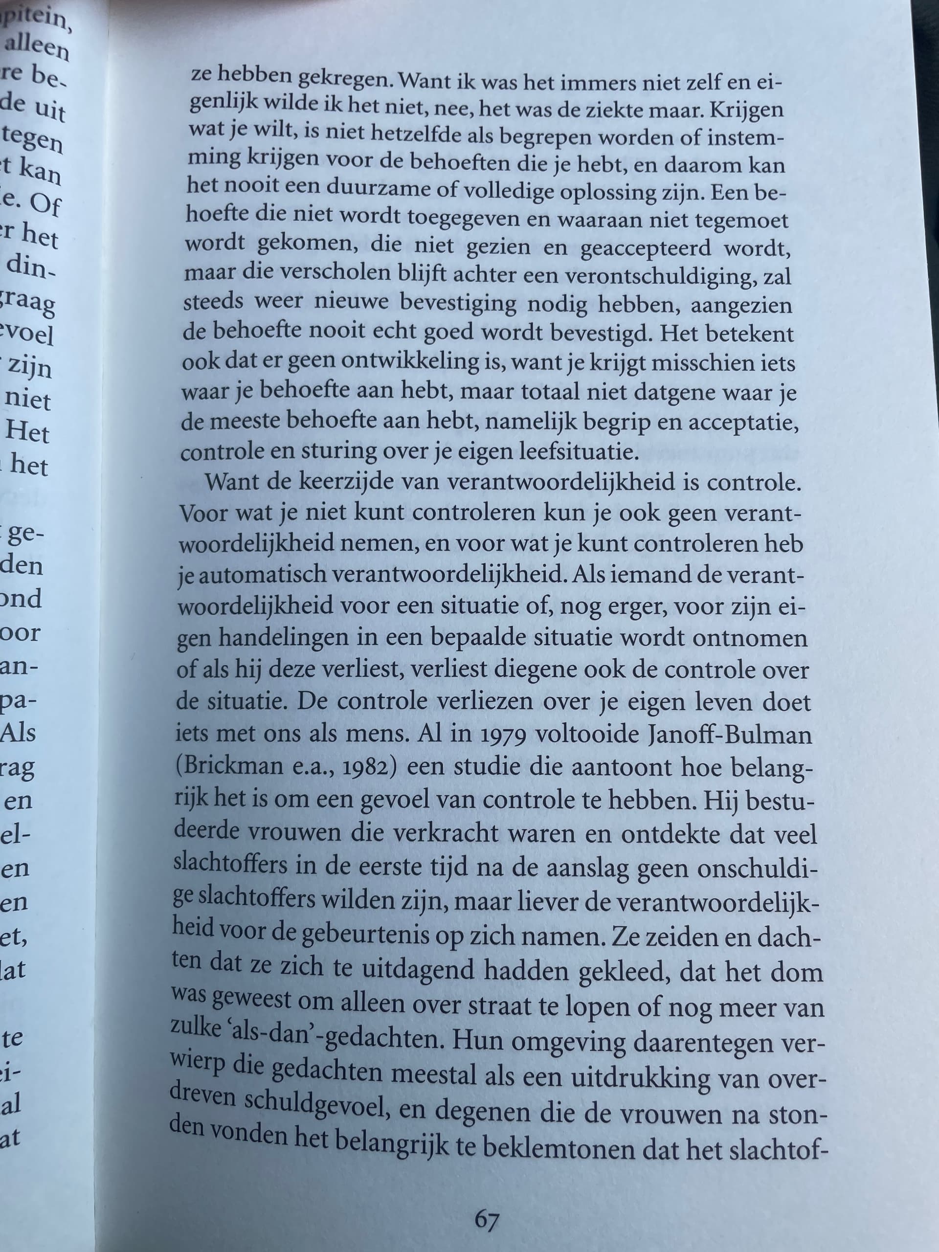 Op basis van een stuk uit een boek dat ik nu lees. Denk jij dat, bv. bij misbruik zeggen van âjij hebt hier geen schuld aan, de dader is de enige verantwoordelijkeâ averechts kan werken doordat het hrt gevoel van controle bij die persoon ondermijnt?? Ik lees dat vaak en zeg het zelf ook wel eens, maar vind dit ook wel een interessante visie.