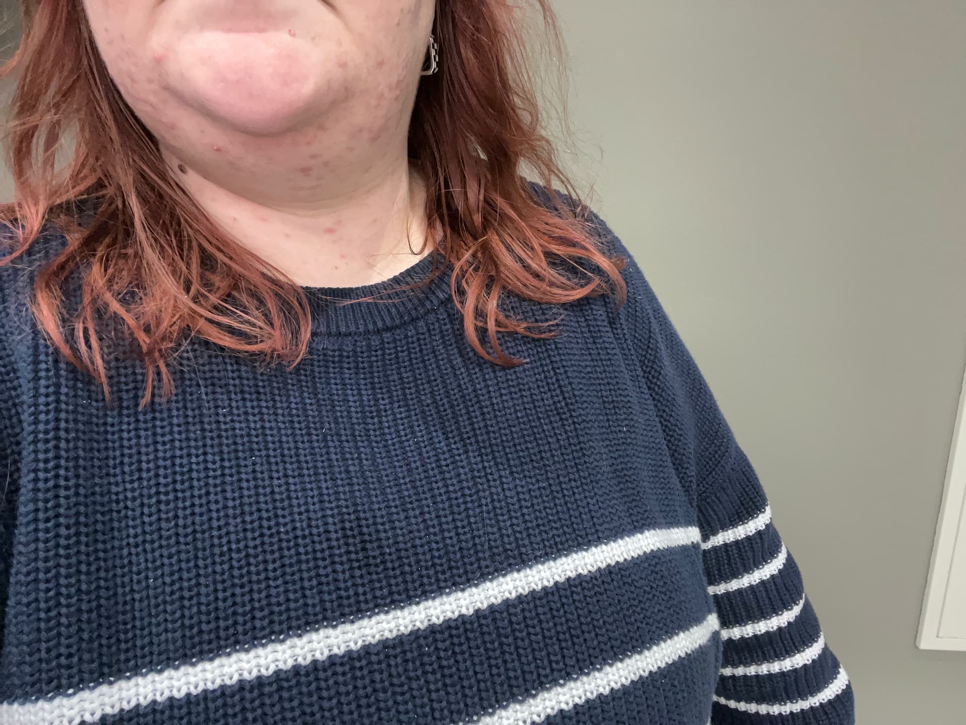 Ik draag dus ook nooit v-hals truien en heb het idee dat ik het ook minder zie, vroeg me af of dat klopte. Lijkt er wel op dus!