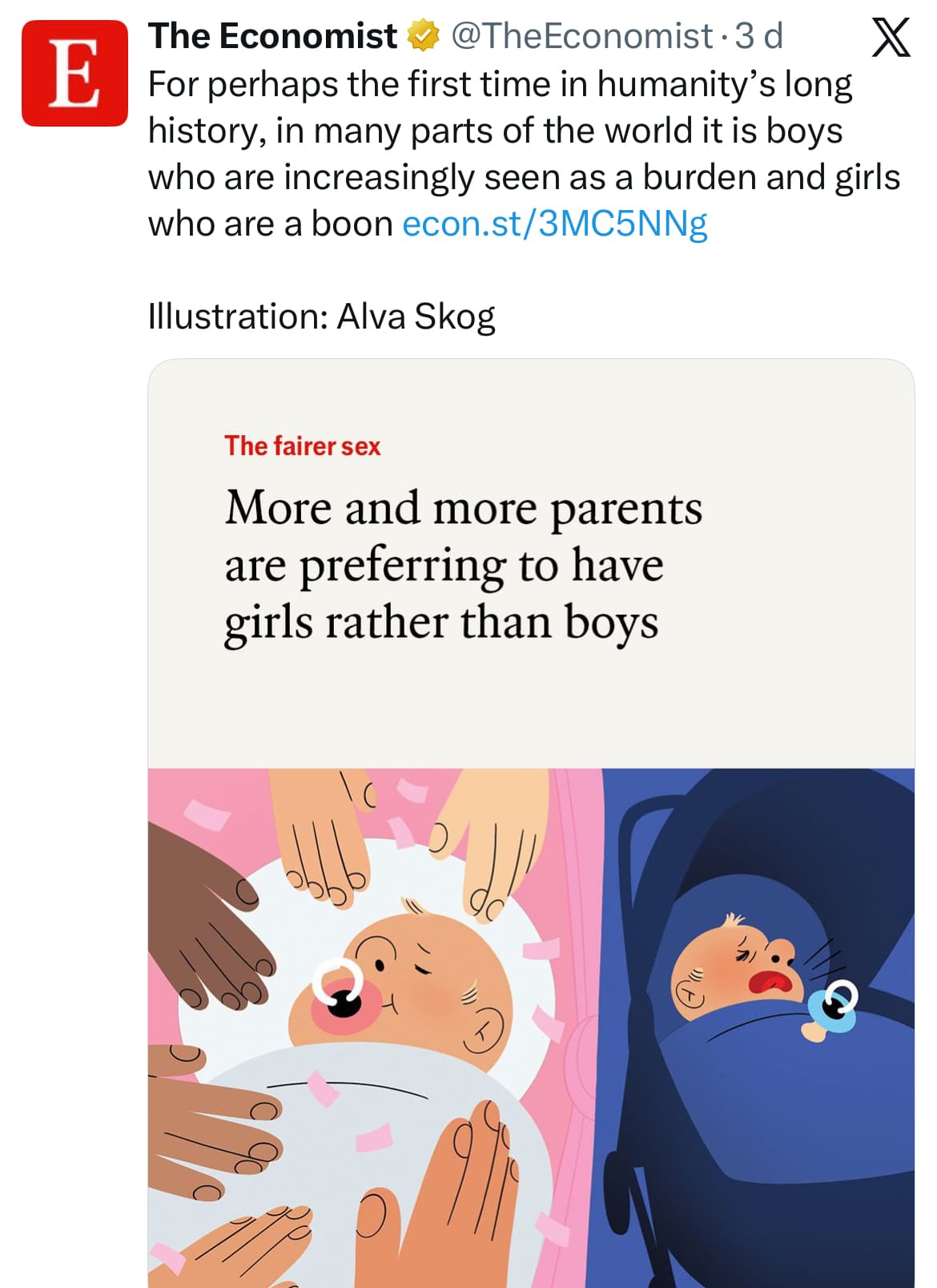 . Snap wel dat tegenwoordig mensen liever een dochter hebben dan een zoon, wat een treurnis joh.