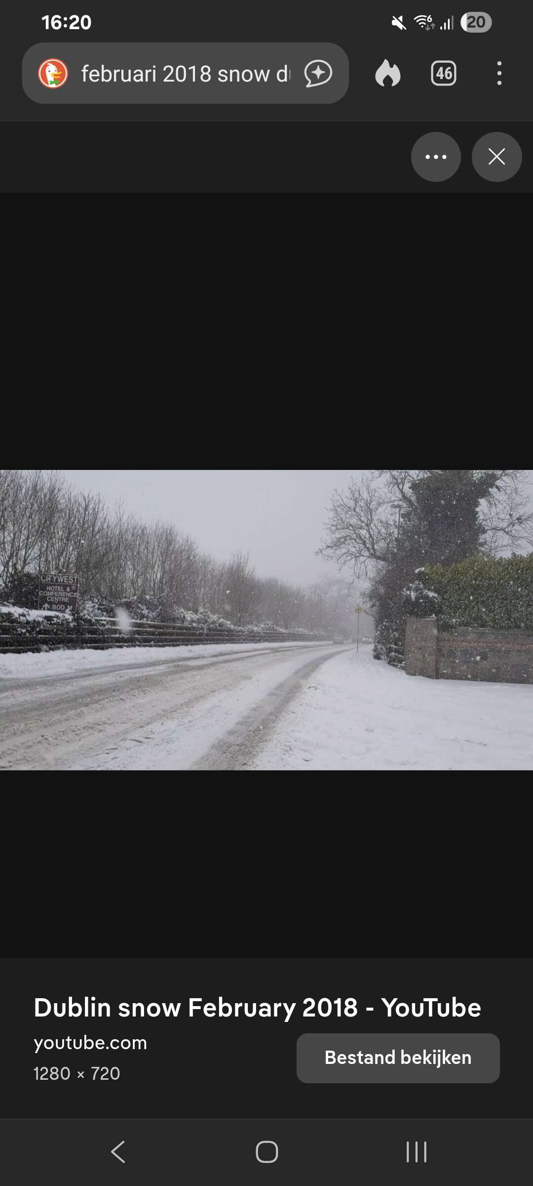 Ik zou donderdag terugvliegen en dat werd zondag, maar dat was omdat er op de bestemming waar we waren te veel sneeuw lag. We waren in Ierland en daar zijn ze echt geen sneeuw gewend. Alle horeca en musea waren ook dicht, reed geen openbaar vervoer etc. En er lag dus echt nagenoeg geen sneeuw.