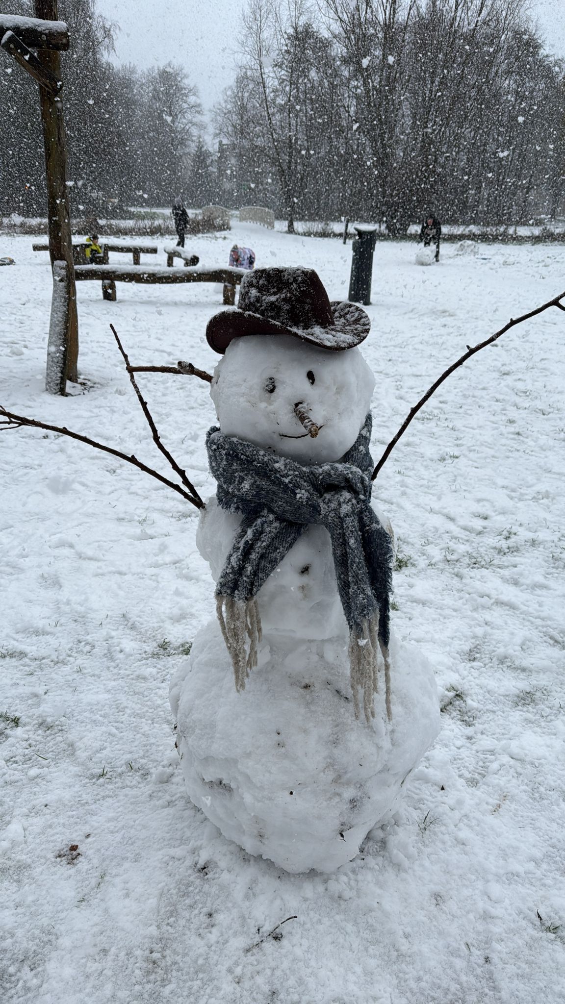 Ik had gisteren een hele grote sneeuwpop gebouwd en binnen een half uur had iemand er een hoed en een grote gebreide sjaal op/om gedaan?! Zo vrolijk.