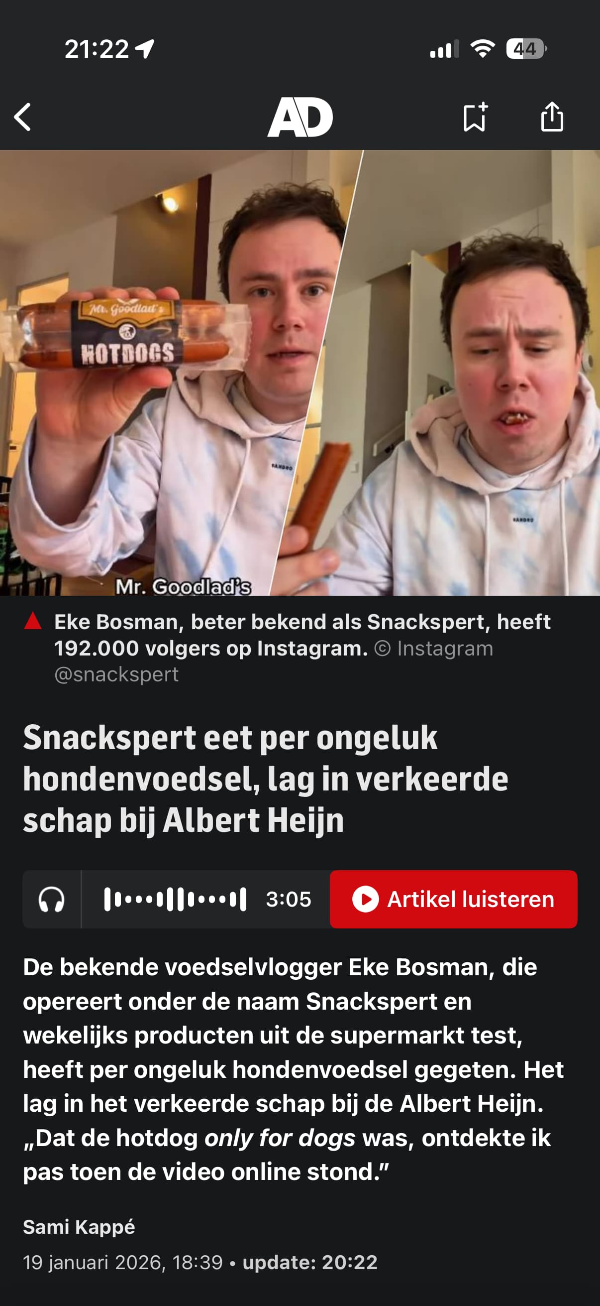 Ik heb deze in de supermarkt ook wel eens in het verkeerde schap gevonden. Maar er staat gewoon op de verpakking dat het voor honden is, inclusief hondje in het logo. Deze gast weet echt precies hoe hij viral moet gaan hoor.