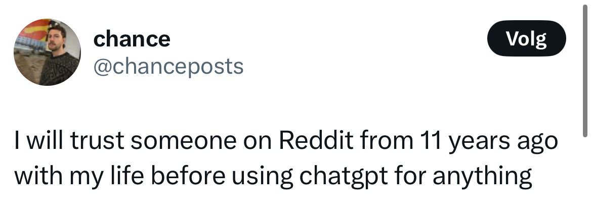 Reddit post is een persoonlijke ervaring terwijl Chad allemaal informatie (ook uit advertenties) verzamelt en combineert tot een antwoord.